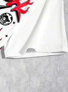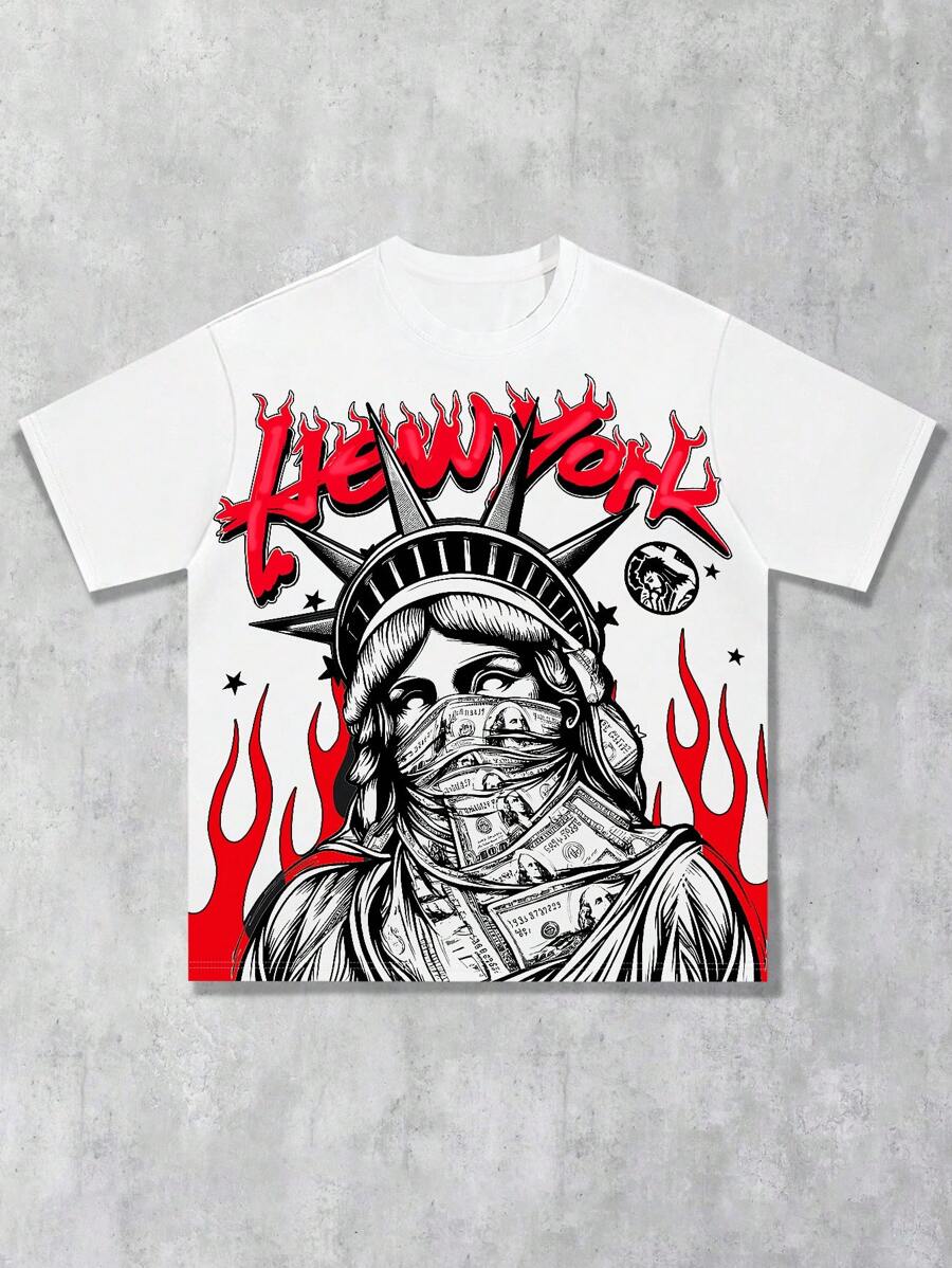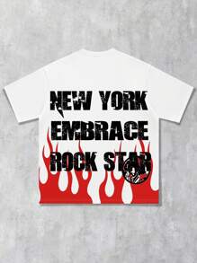 Grunge Punk Men's Religious Character Summer Casual Round Neck Letter & Flame Printed T-Shirt
