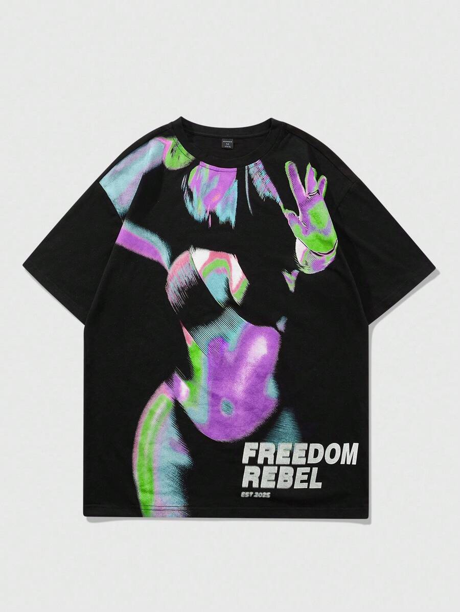 Grunge Punk Men's Rock Gothic Futuristic Retro Heat Sensitive Graphic Short Sleeve T-Shirt, Suitable For Everyday Wear, Spring/Summer, Halloween