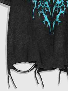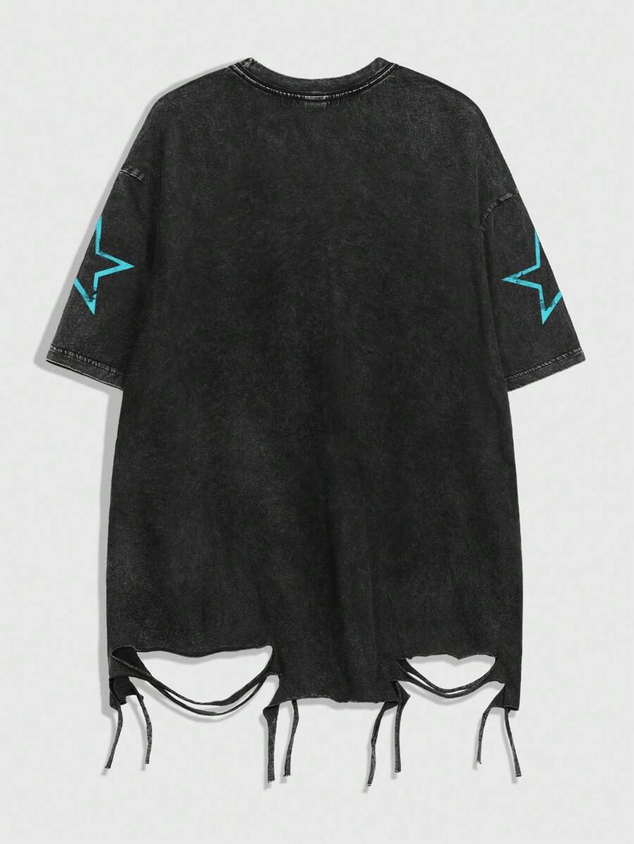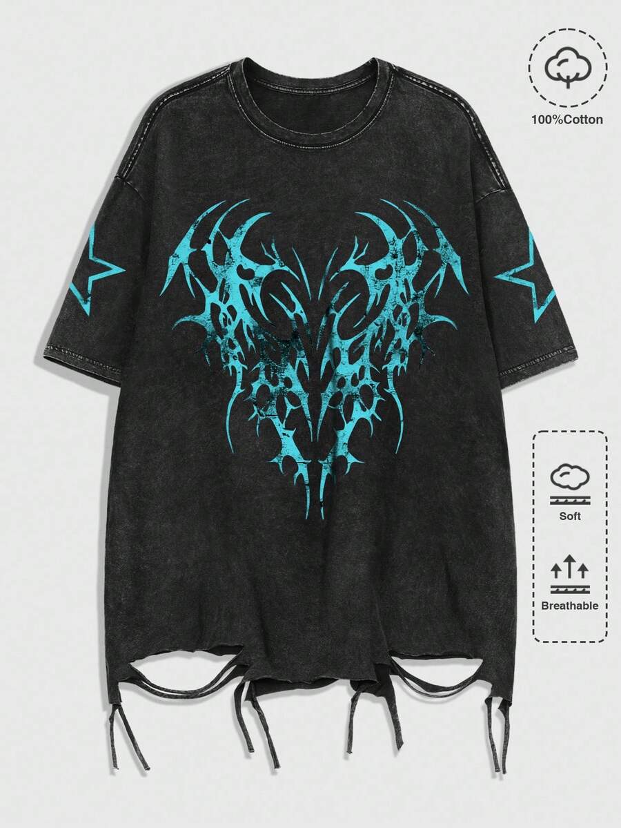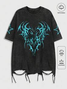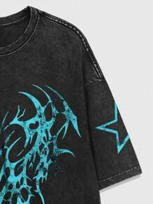 Grunge Punk Men's Round Neck Short Sleeve Fashionable Retro Comfortable Breathable Snow Washed T-Shirt, 2000s Style