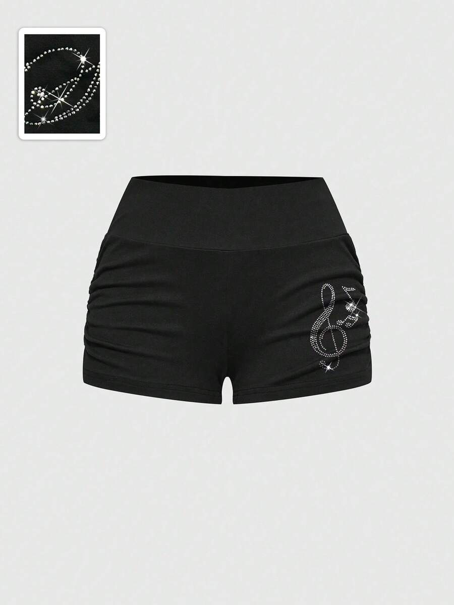 Grunge Punk Music Festival Punk Ruched Rhinestone Note Super Low Waist Mini Shorts