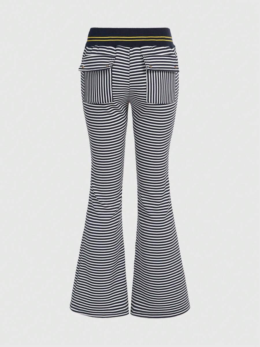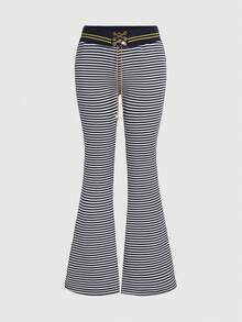 Grunge Punk Nautical Navy Style Metal Chain Pendant Retro Flare Leg Low Waist Pants