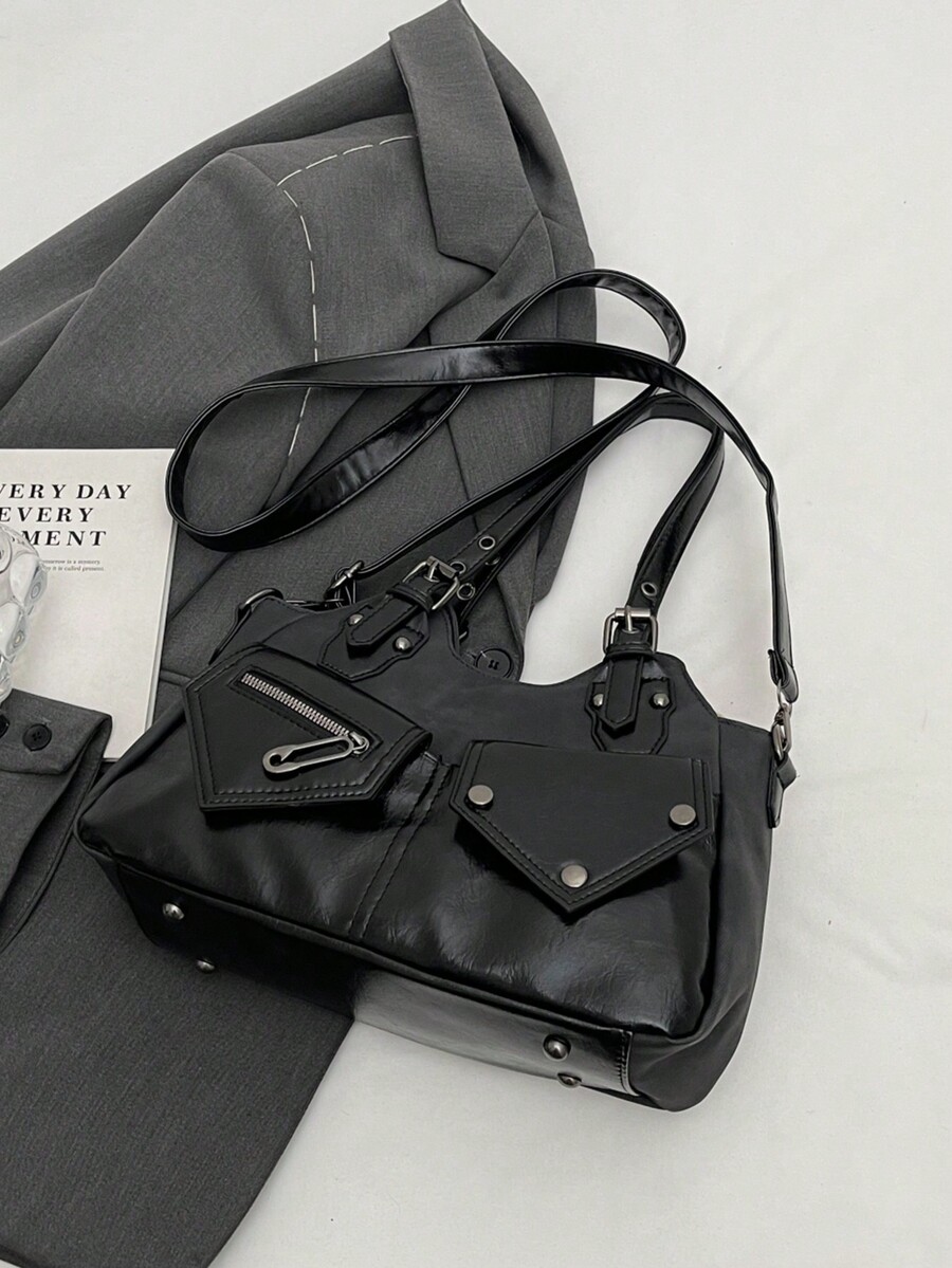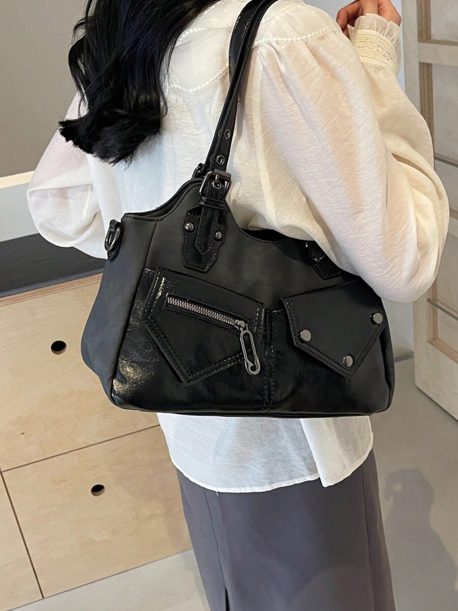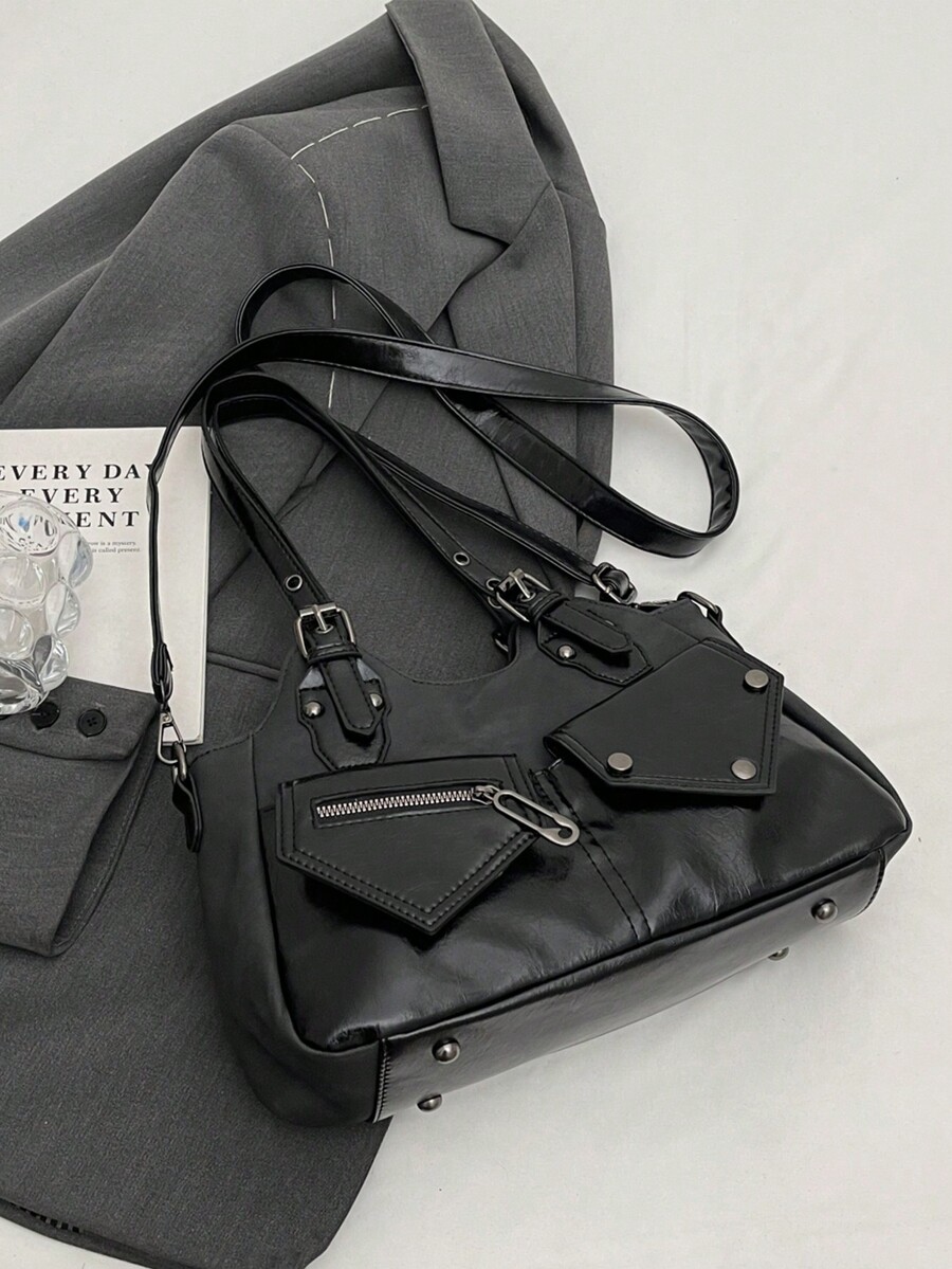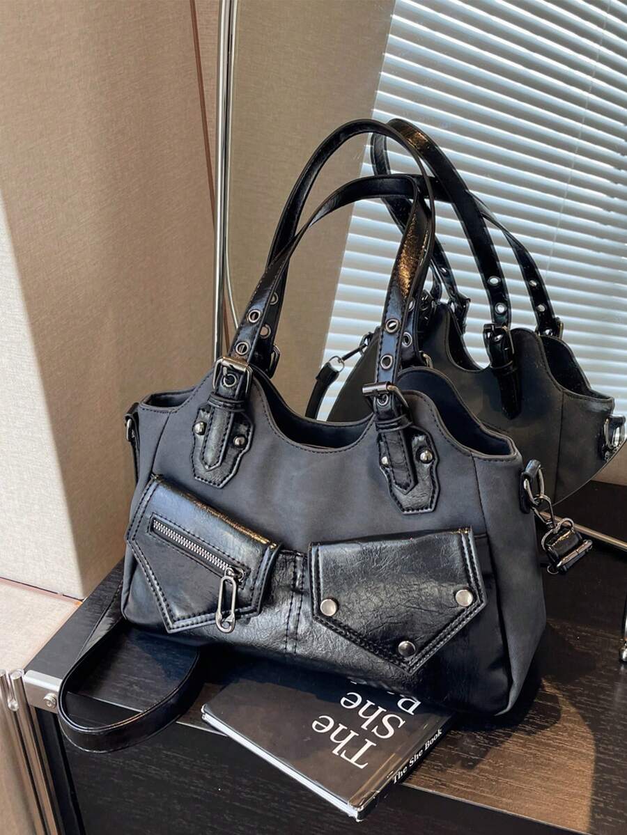 Grunge Punk New Casual Punk Riveted Black Tote Bag Satchel Shoulder Bag For Women