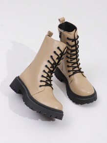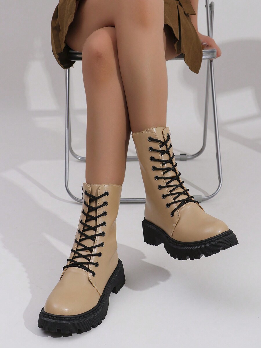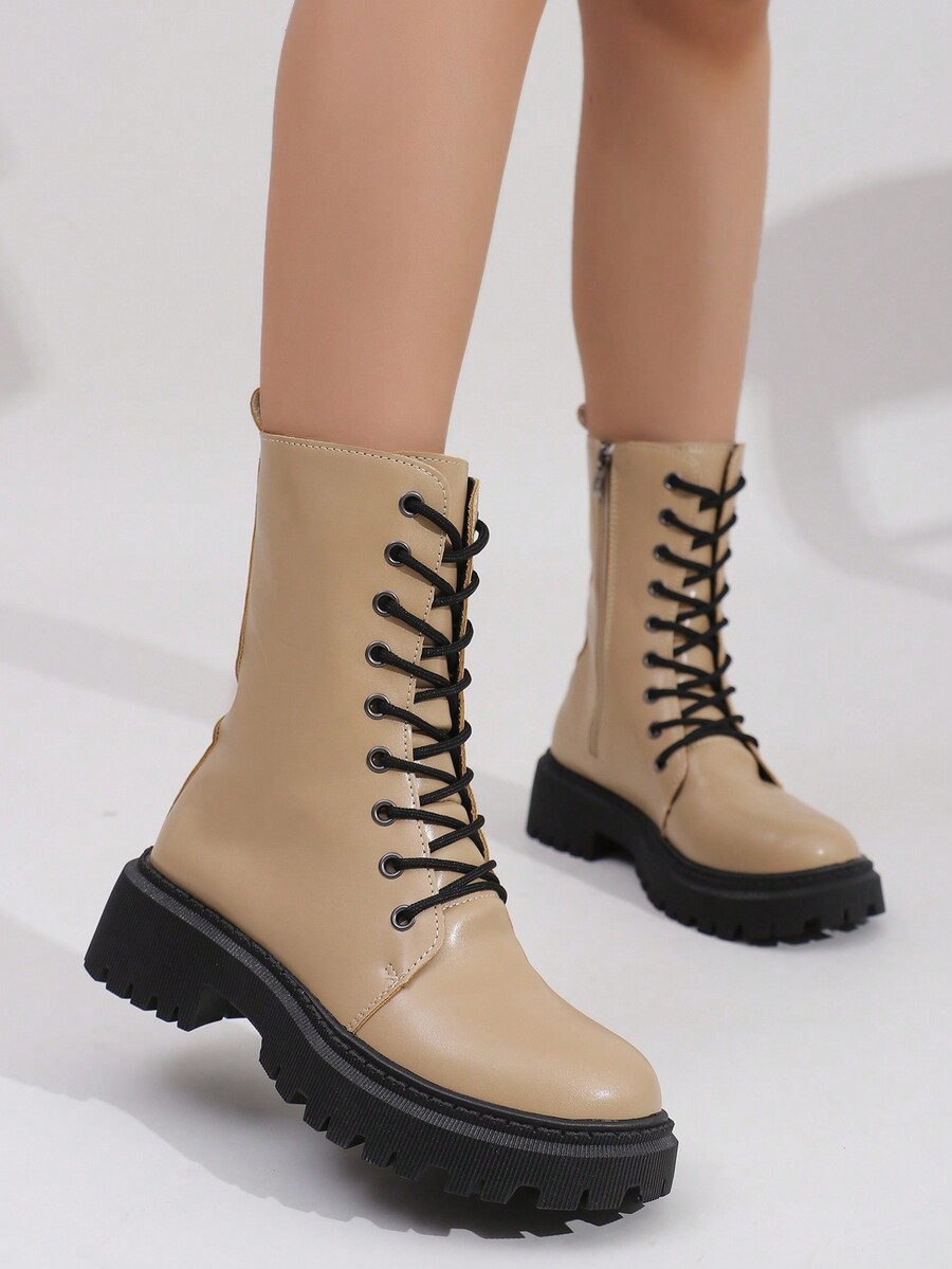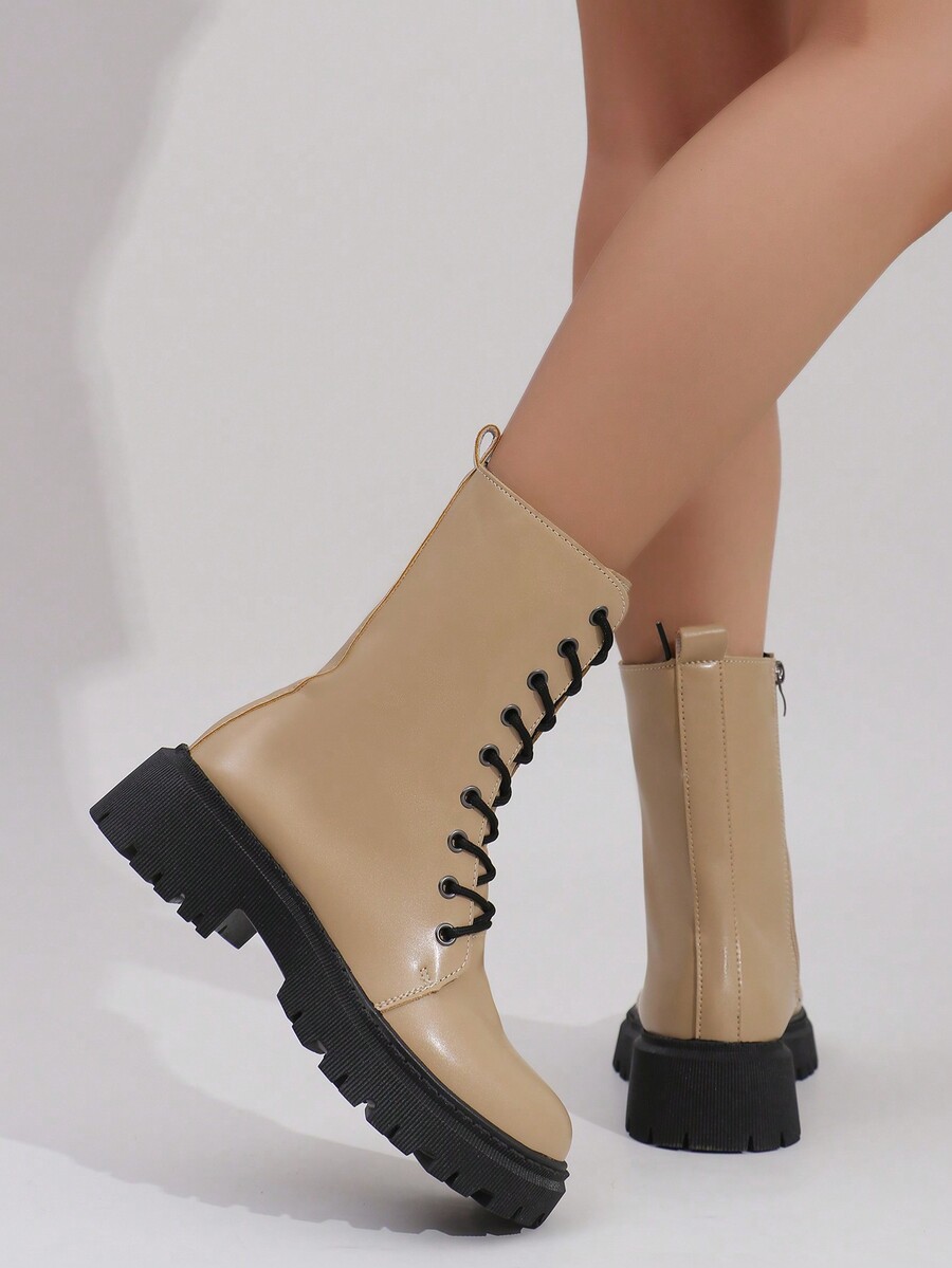Grunge Punk New Fall Comfortable & Casual Women Minimalistic Tie-Up Zip Decor Mid-Calf Boots