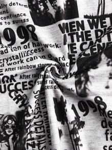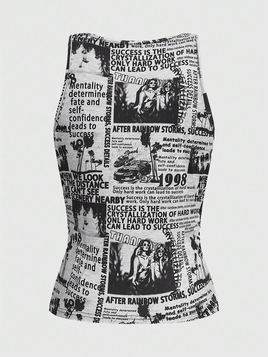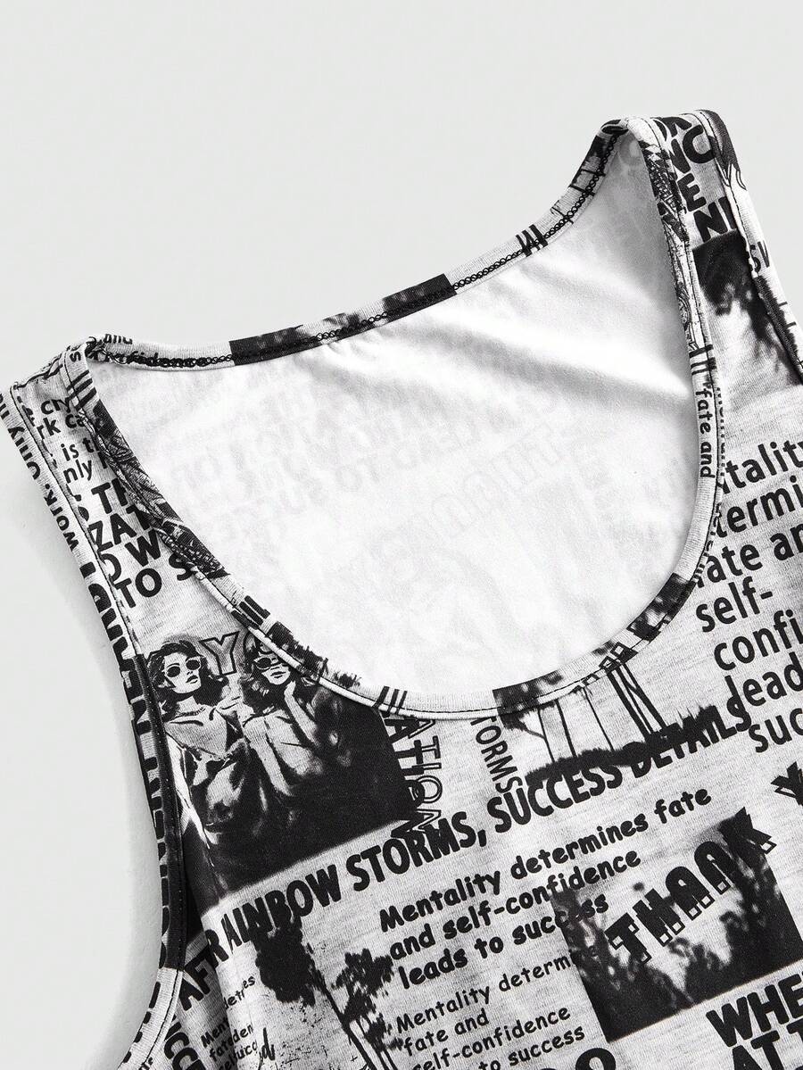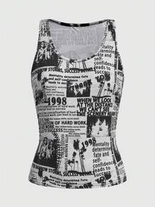 Grunge Punk Newspaper Print Tank Top