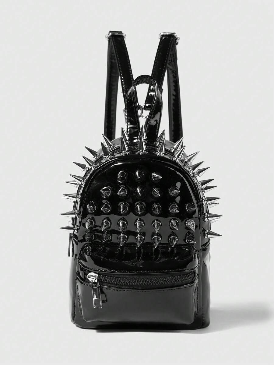 Grunge Punk Niche Design Rivet Tassel Pleated Dual Shoulder Bag, Punk Street Style
