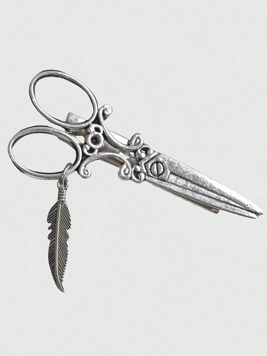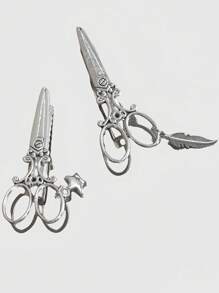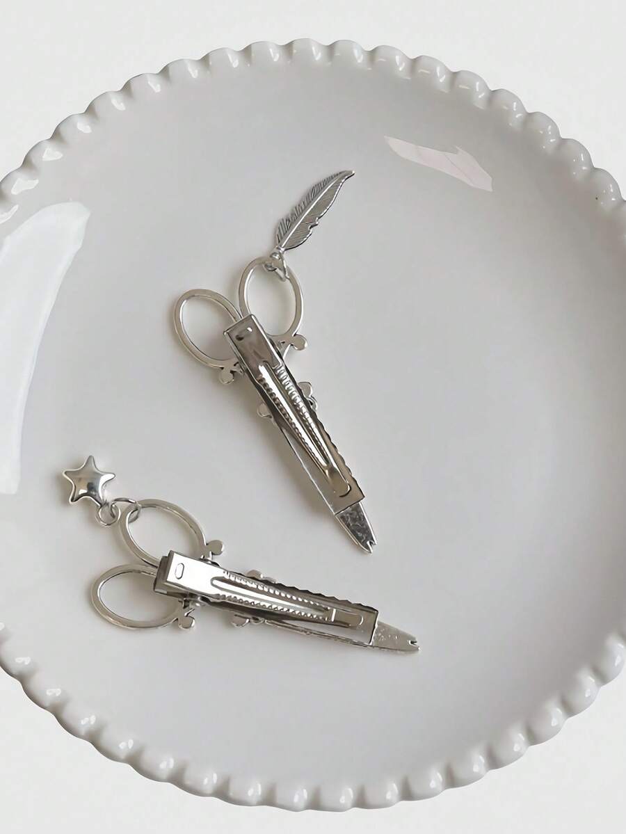 Grunge Punk Personalized Scissors Hairpin, Leaf & Star Pendant, Cosplay, Edgy, Grunge, Fashion Dark Style Hairclips