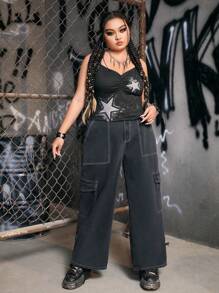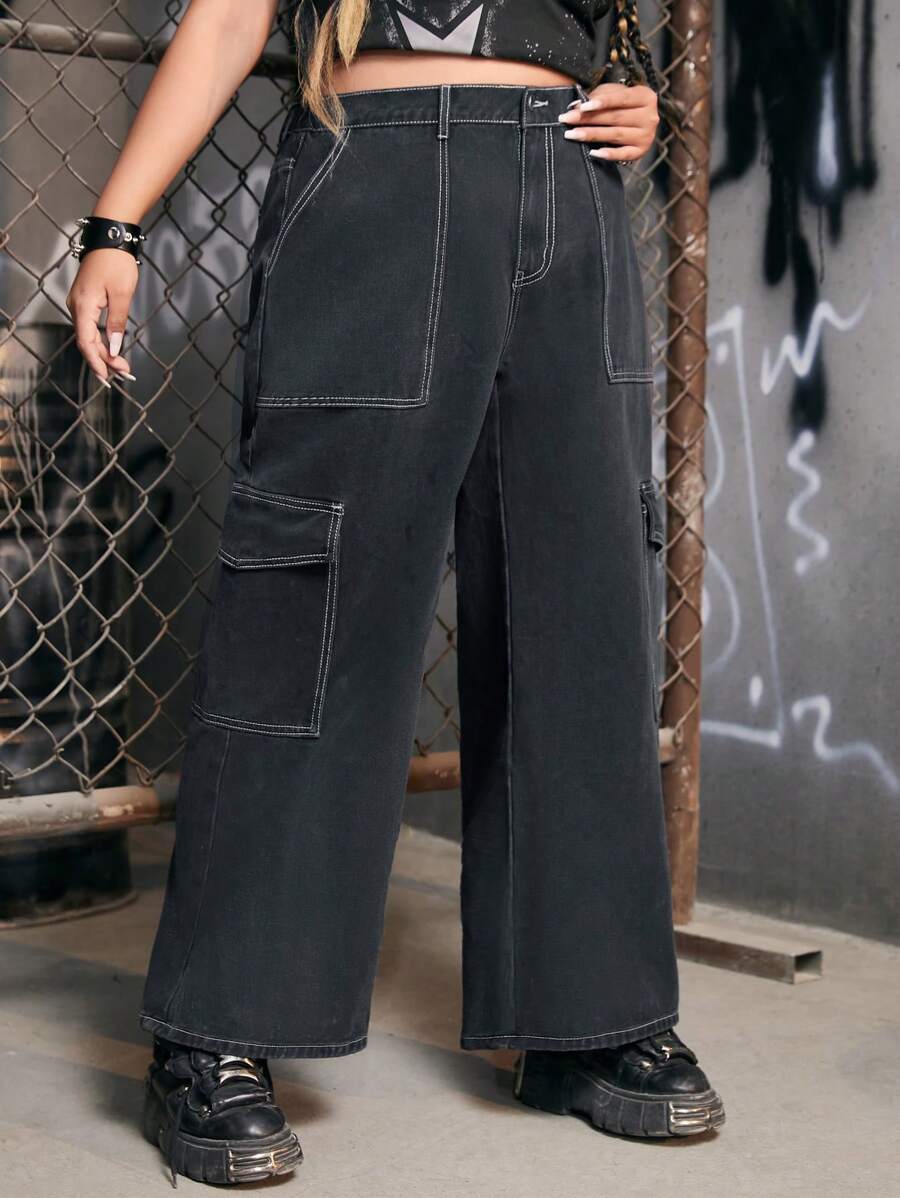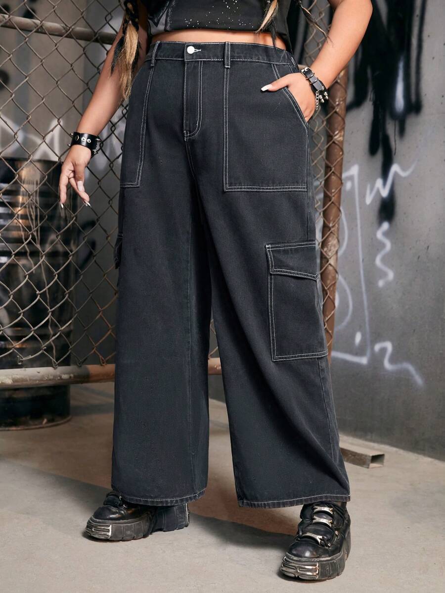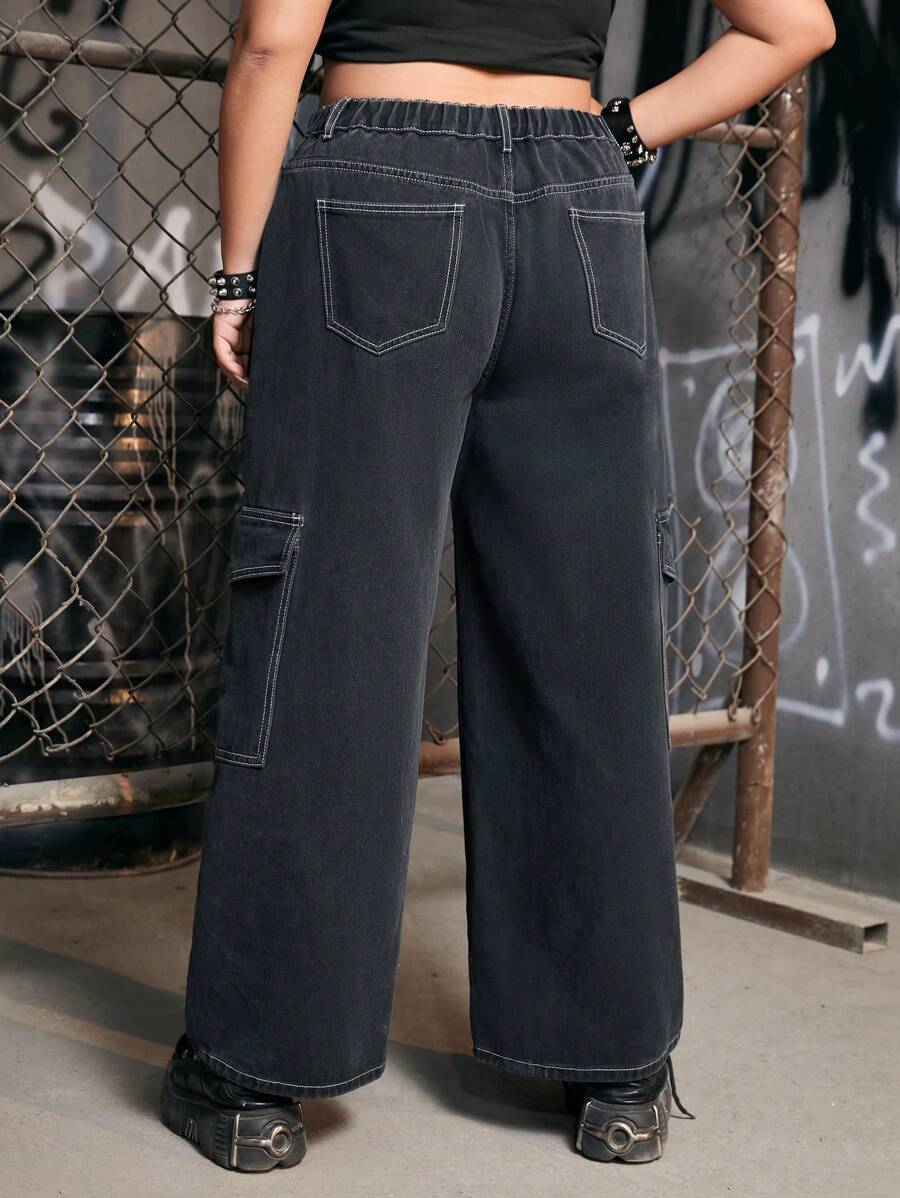 Grunge Punk Plus Flap Pocket Side Cargo Jeans