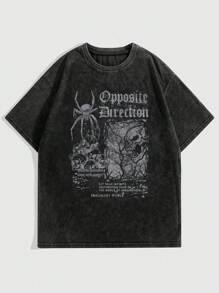 Grunge Punk Plus Size Black Spider & Skull With Slogan Print T-Shirt, School, Summer