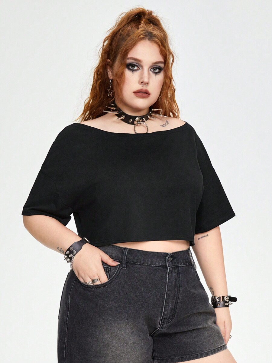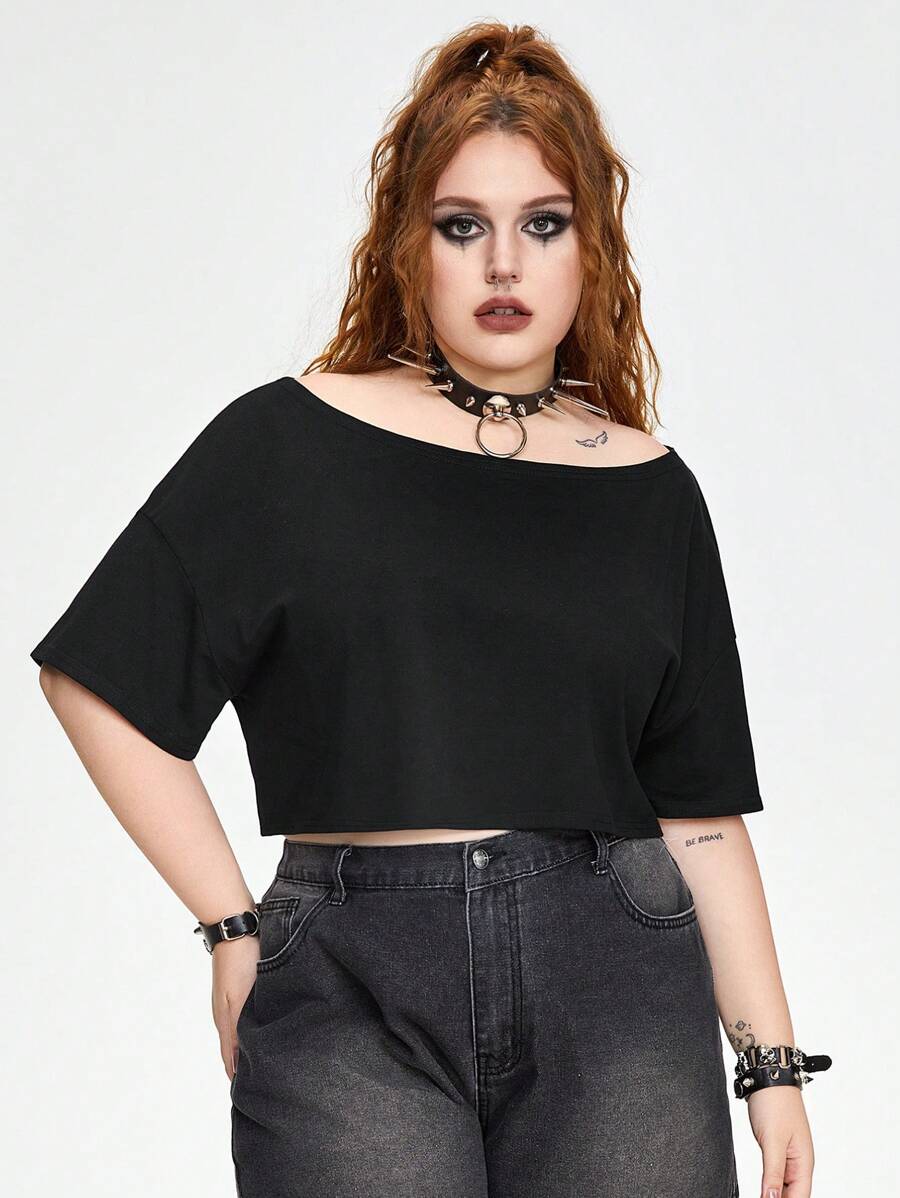 Grunge Punk Plus Size Loose Off-Shoulder Crop Top