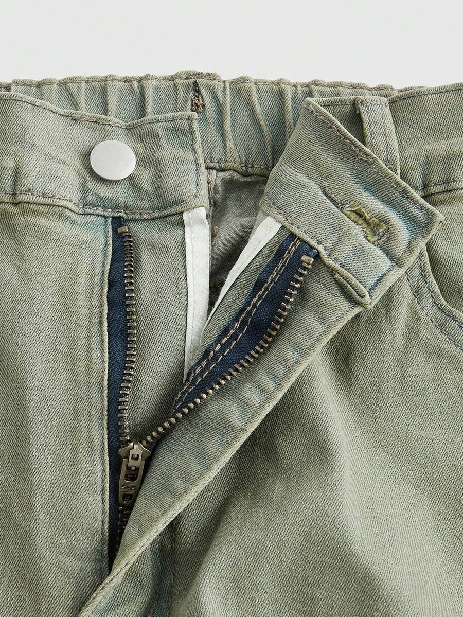 Grunge Punk Plus Size Solid Color Distressed Jeans With Pockets And Button Closure