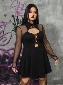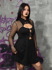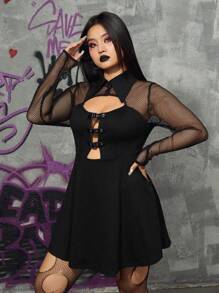 Grunge Punk Plus Size Women'S Sexy Mesh Sleeve Patchwork Dress