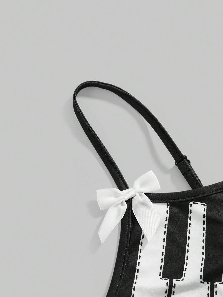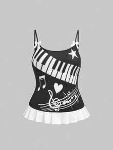 Grunge Punk Plus Size Women Y2K Babe Piano Key Print Camisole
