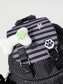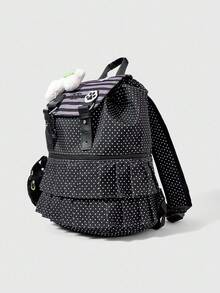 Grunge Punk Polka Dot Ruffle Striped Drawstring Closure Large Capacity Multi-Function Backpack, Casual & Versatile For School, Party, Shopping