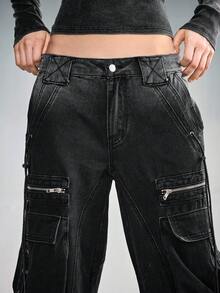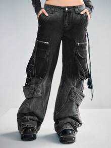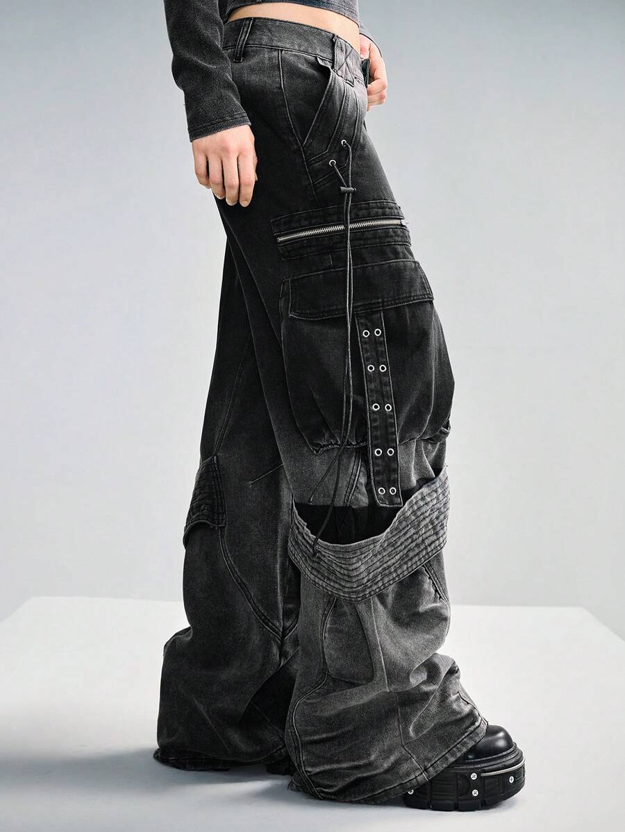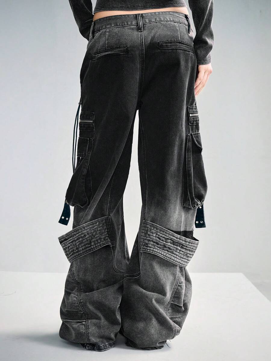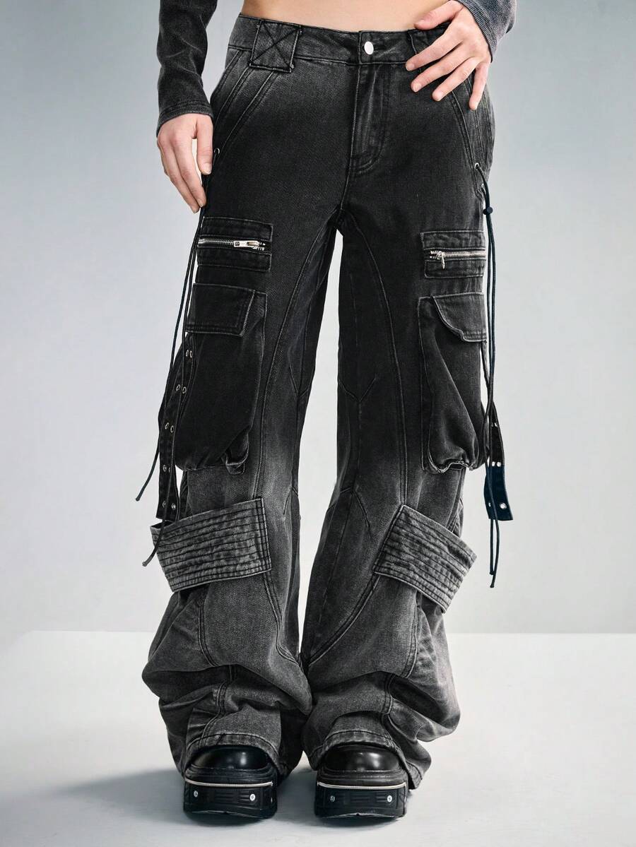 Grunge Punk Punk Distressed Ombre Washed Cargo Low Waist Wide Leg Jeans