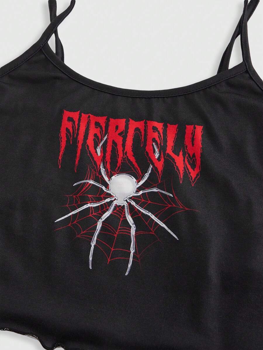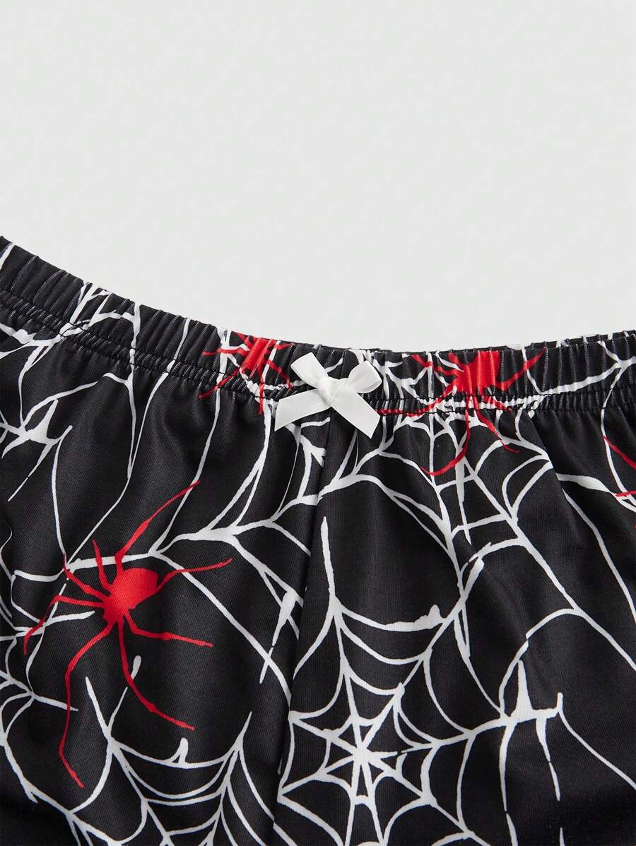 Grunge Punk Punk Style Spider Web & Spider Print Camisole & Shorts Pajama Set