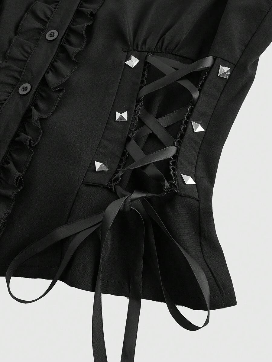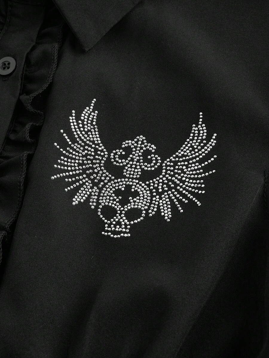 Grunge Punk Punk Subculture Y2K Black Skeleton Sequin Decor Tight-Fitting Long Sleeve Shirt For Women