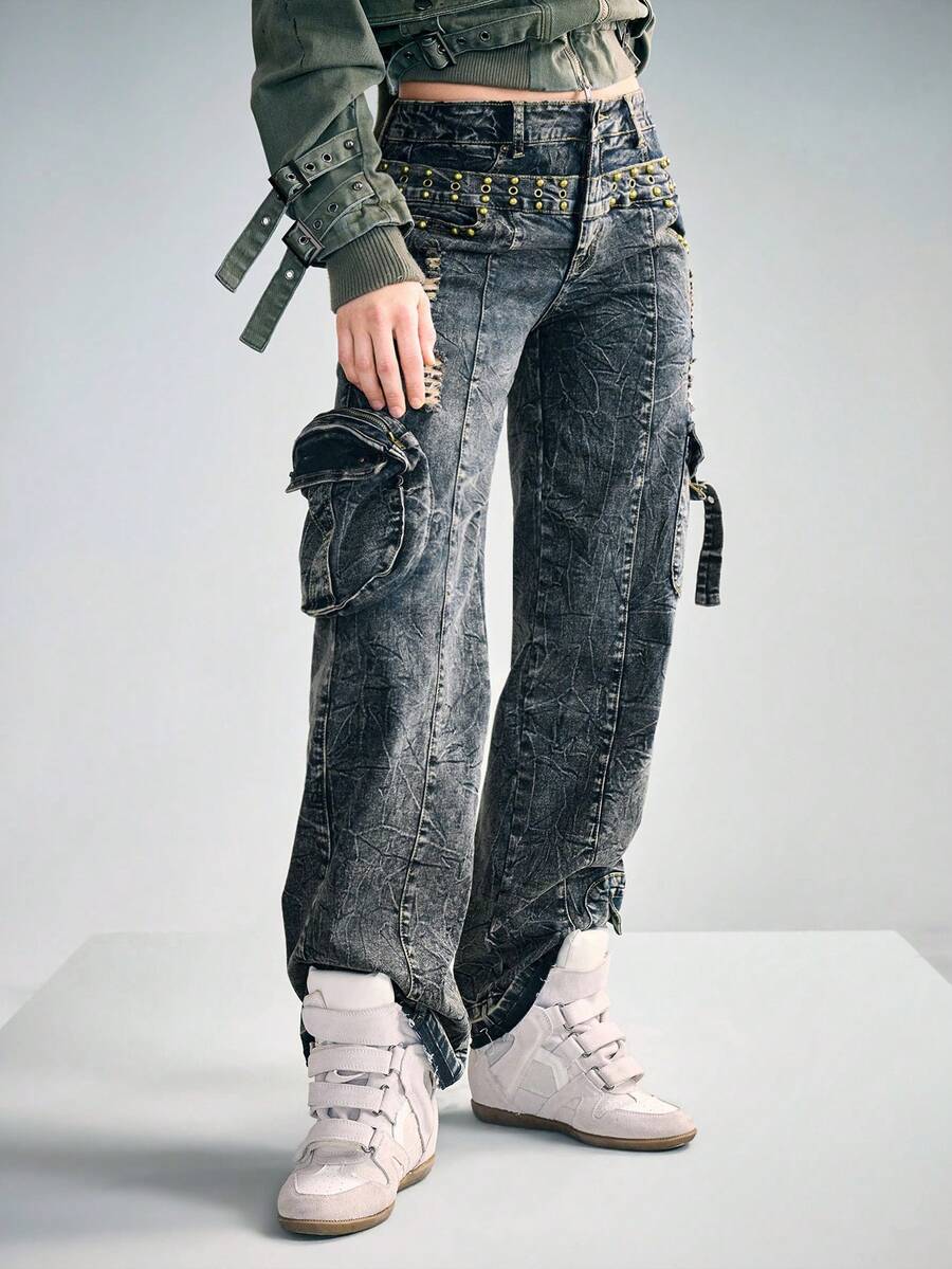 Grunge Punk Punk Wasteland 2 In 1 Double Waistband Cargo Jeans