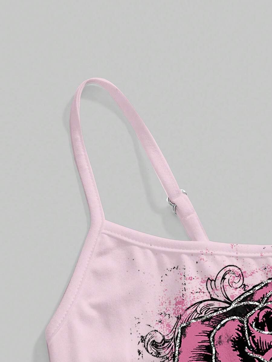 Grunge Punk Retro Rose Vine Tie Dye Accent White Camisole Tank Top