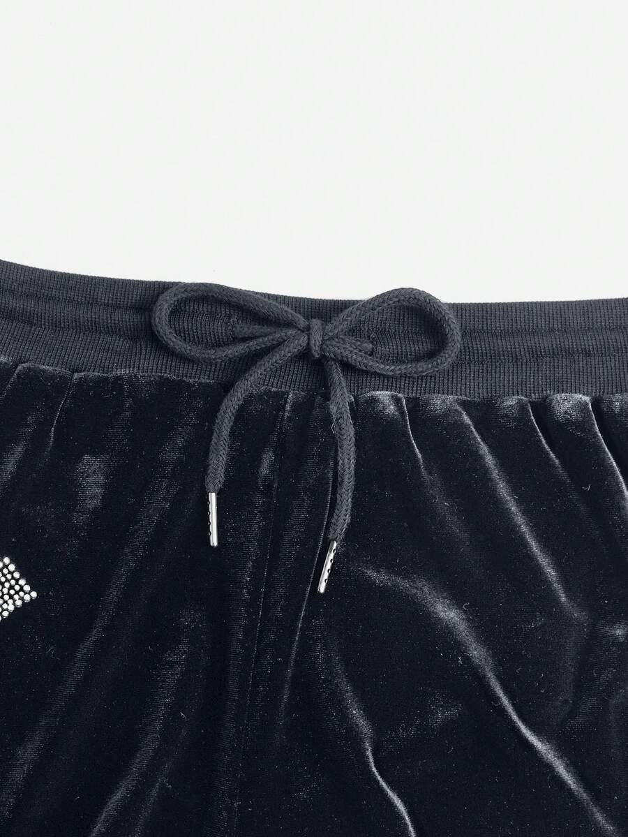 Grunge Punk Rhinestone~ Letter Pattern Decor Drawstring Waist Shorts