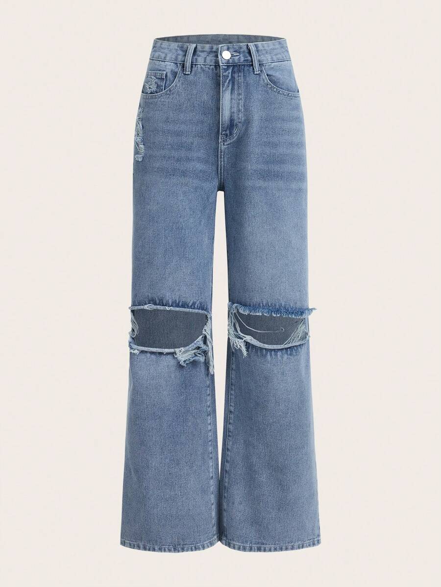 Grunge Punk Ripped Frayed Straight Leg Jeans