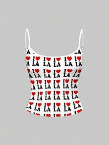Grunge Punk Sexy Babe Slogan Heart Graphic Vintage Sexy Low-Cut Y2K Full Print White Women Tank Top