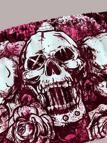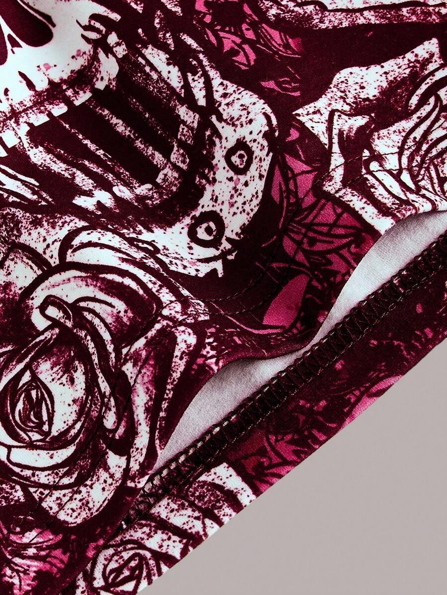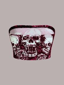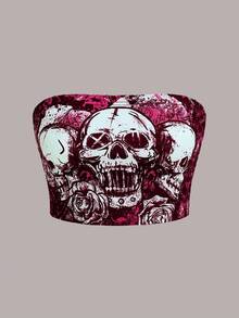 Grunge Punk Sexy Casual Y2K Subculture Music Festival Punk Skull Print Rose Pattern Stretchy Tube Top For Women, Spring/Summer