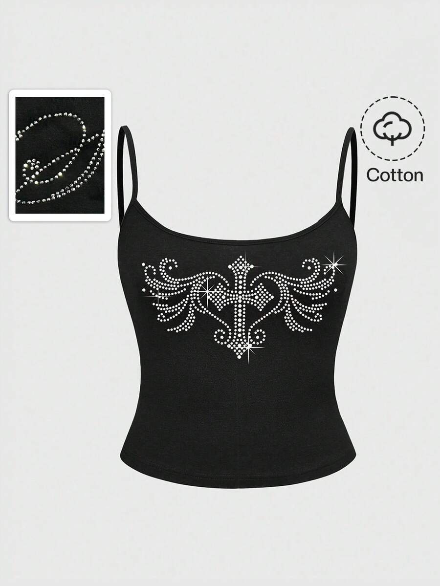 Grunge Punk Sexy Punk Rock Festival Cross Wing Rhinestone Shiny Party Vest For Women