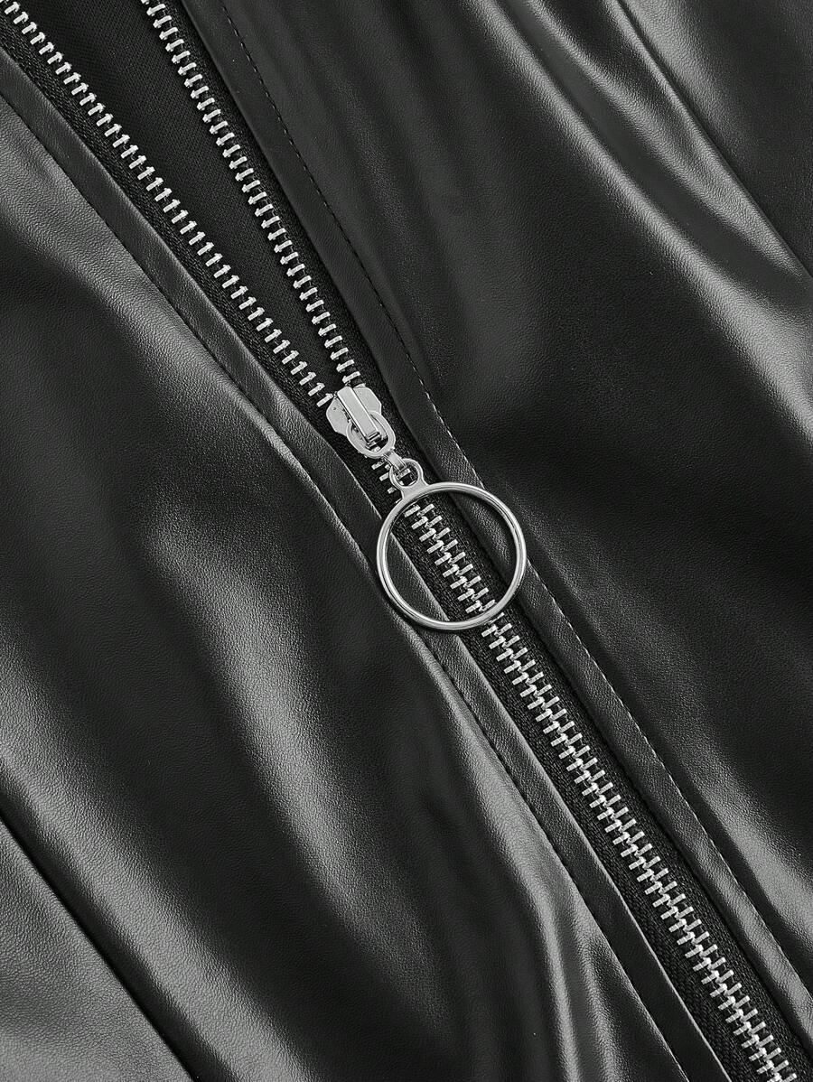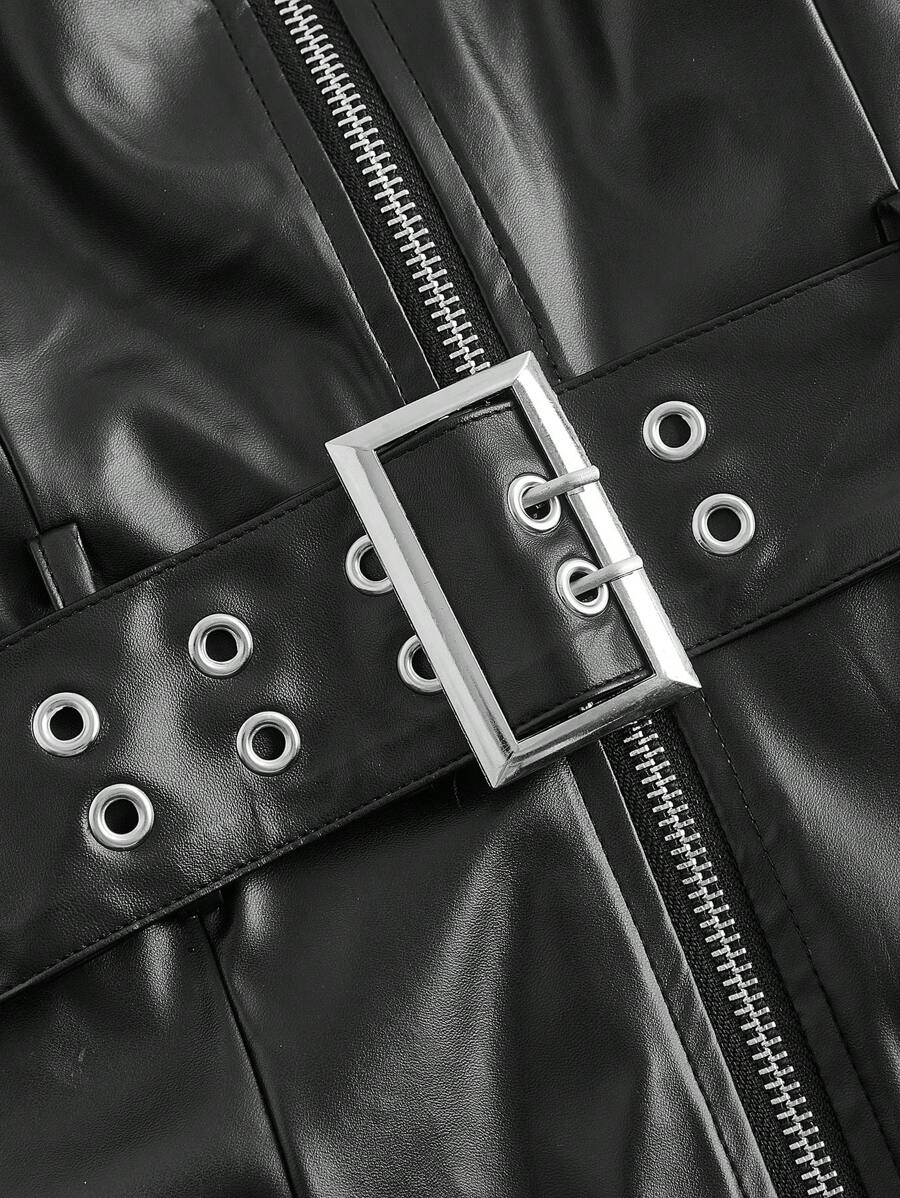 Grunge Punk Sexy Strapless Zipper Belted Faux Leather Dress For Women, School