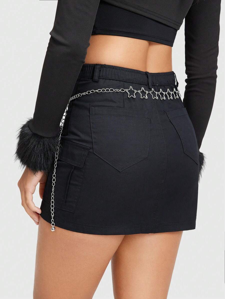 Grunge Punk Silvery Star Waist Chain Y2K Solid Color Metal Chain Belt Summer Versatile Skirt Pants Waist Chain
