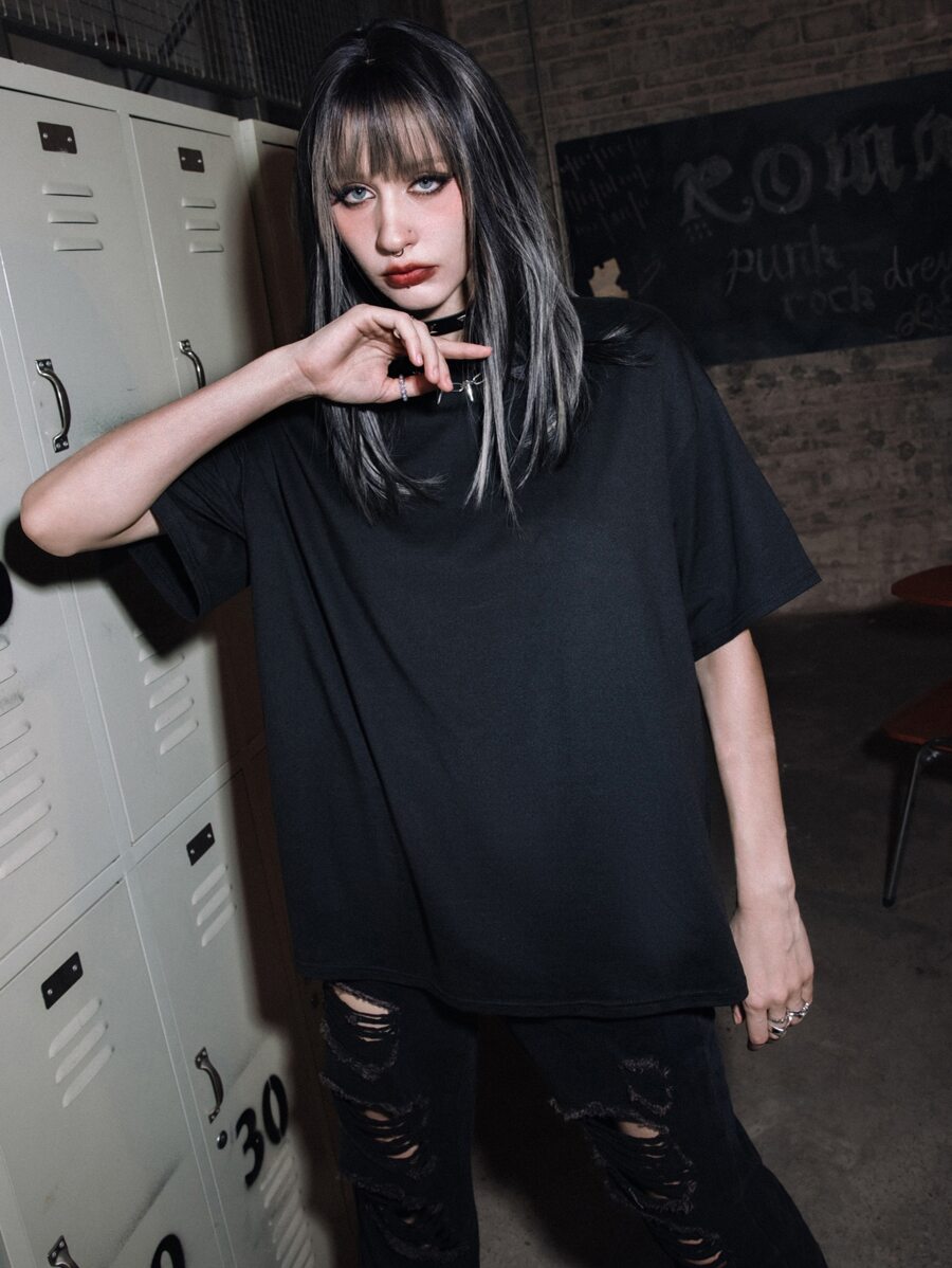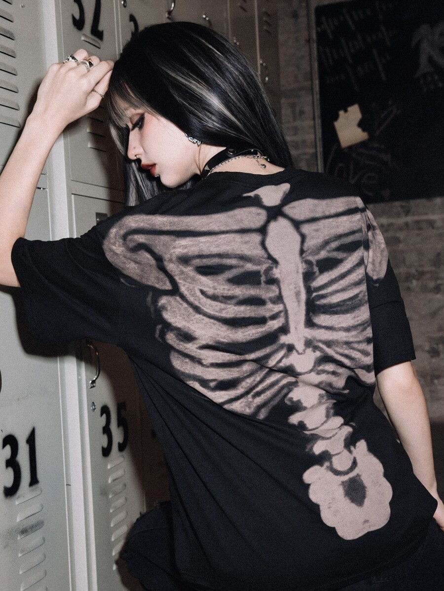 Grunge Punk Skeleton Graphic Drop Shoulder Tee, School, Unisex