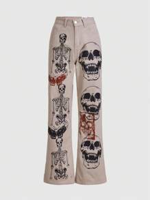Grunge Punk Skull & Butterfly Print Jeans