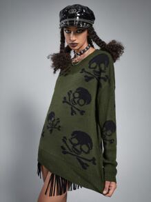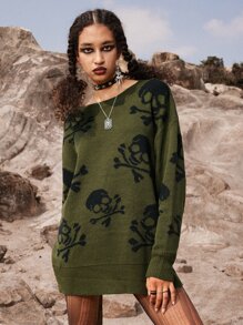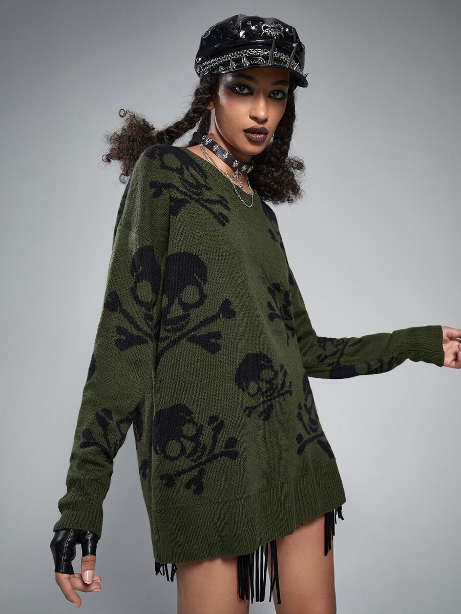 Grunge Punk Skull Pattern Oversized Sweater