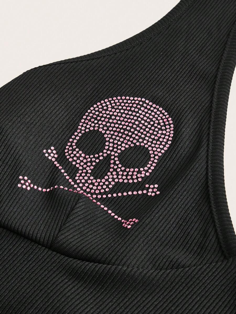 Grunge Punk Skull Rhinestone Backless Halter Top