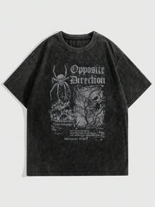 Grunge Punk Skull & Slogan Graphic Tee Opposite Direction Print, For School