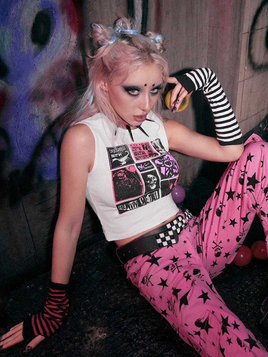 Grunge Punk Slogan Skull Graphic Tank Top