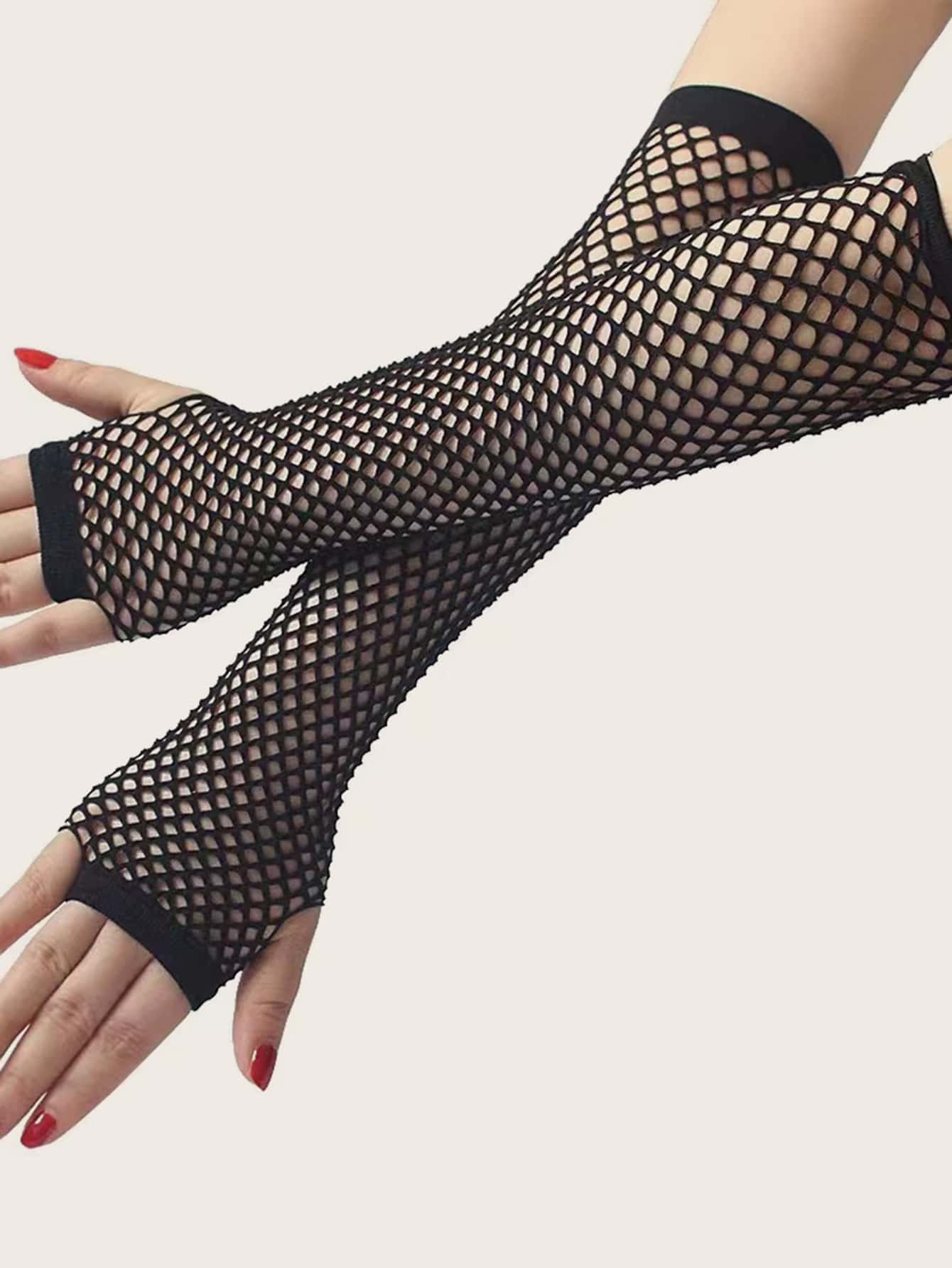 Grunge Punk Solid Fishnet Long Fingerless Gloves Halloween Accessories Winter Gloves