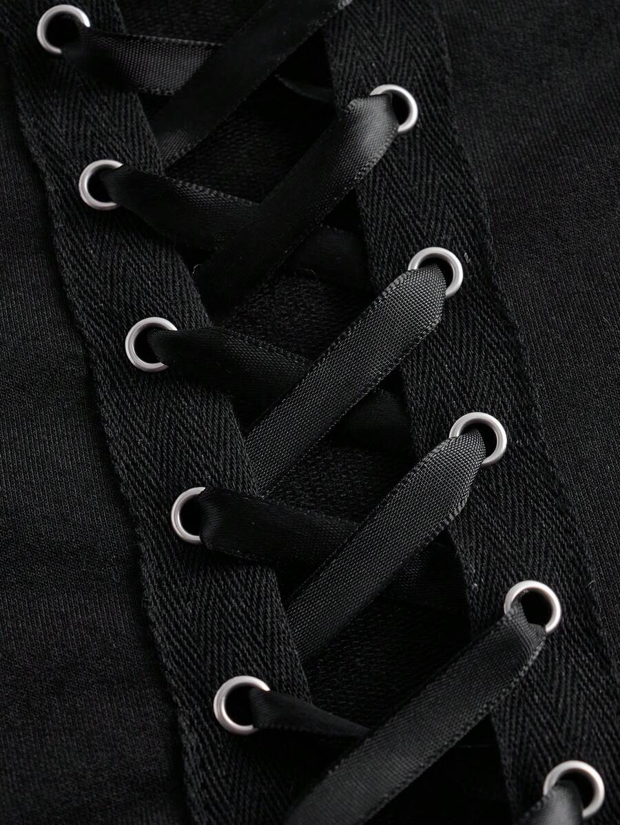 Grunge Punk Solid Lace Up Back Crop Hoodie, School