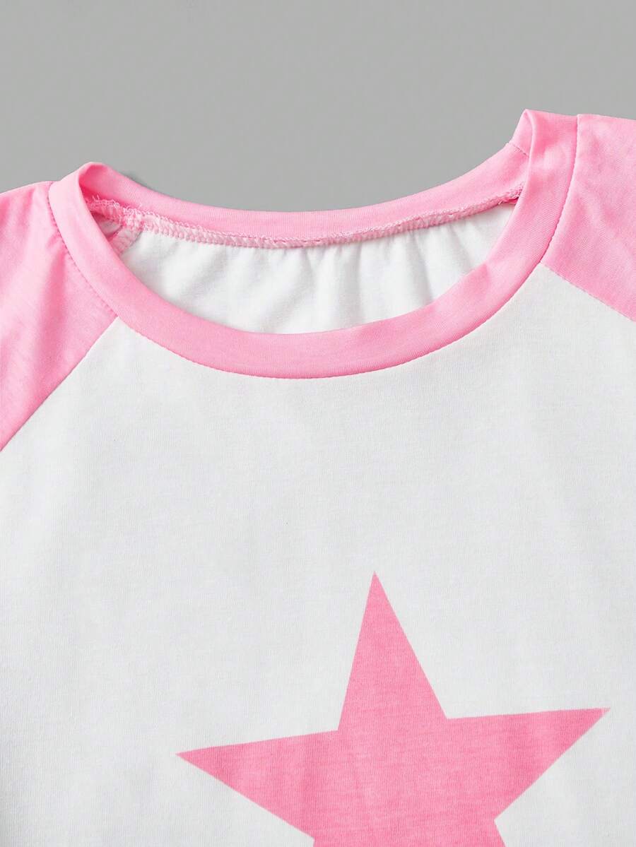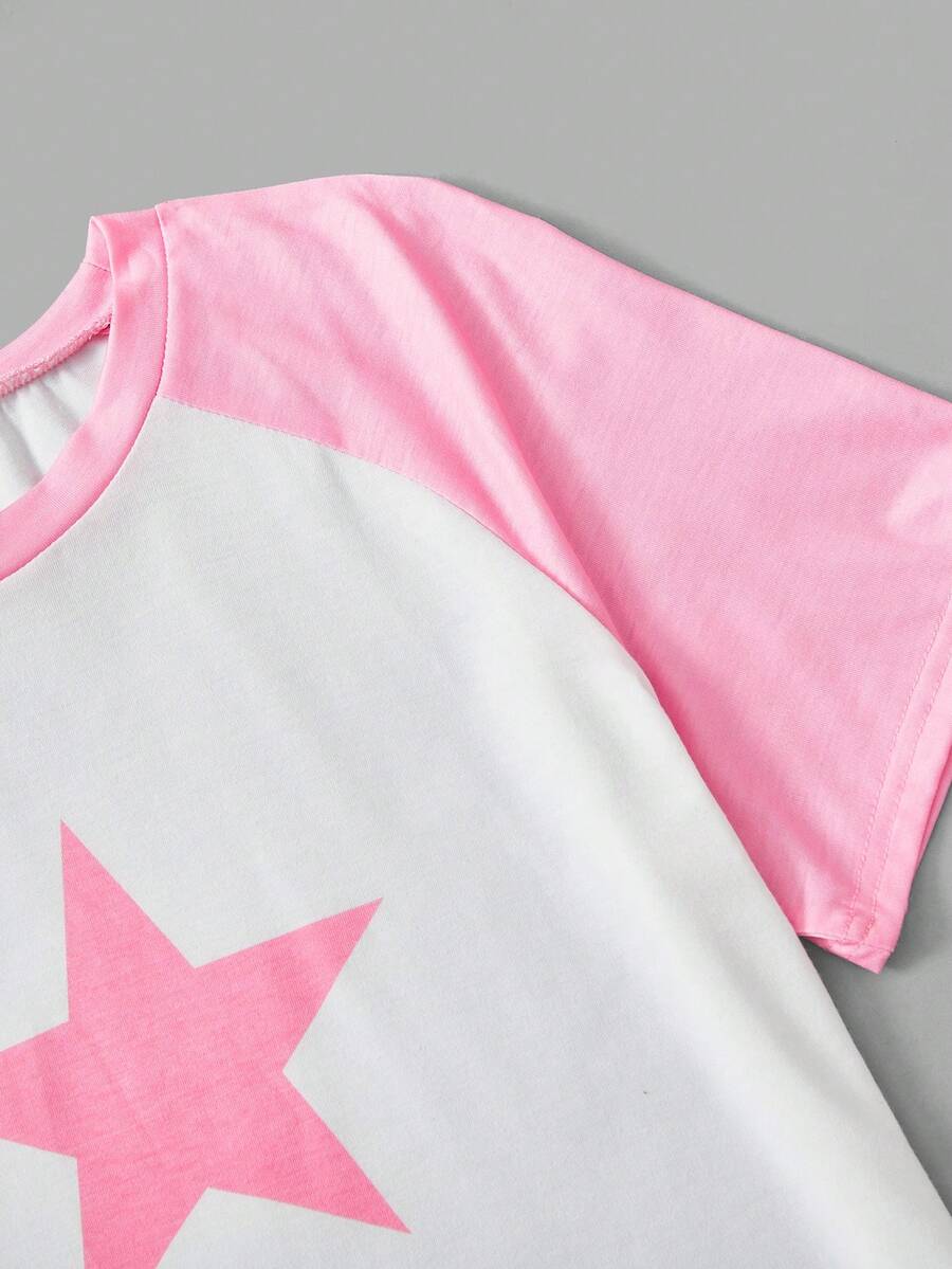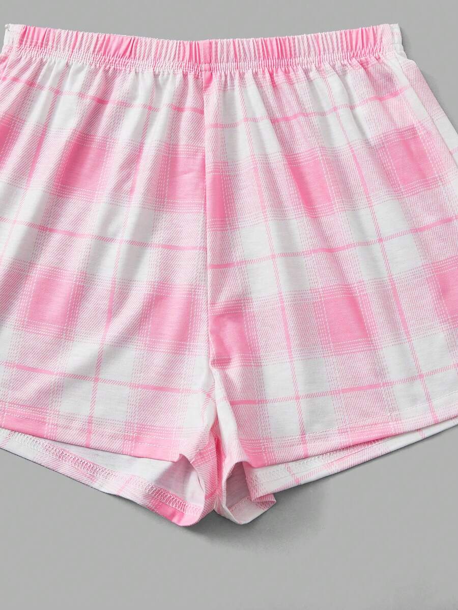 Grunge Punk Star Print Raglan Sleeve Tee & Plaid Shorts PJ Set
