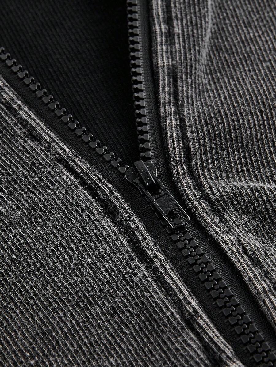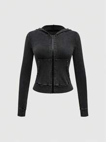 Grunge Punk Street Style Star Rivet Washed Distress Elastic Knit Fitted Long Sleeve Hooded T-Shirt For Women