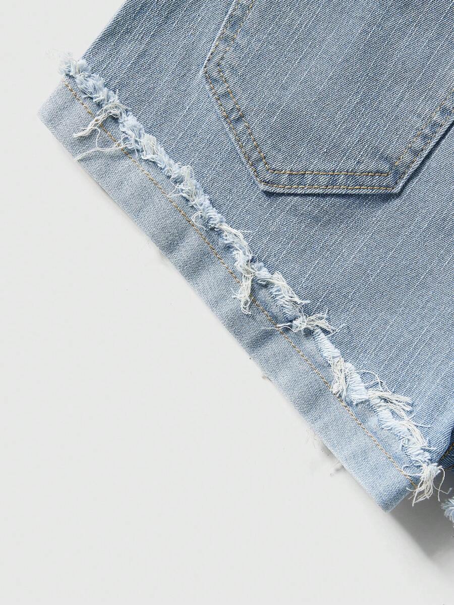 Grunge Punk Streetwear Casual Women Sexy Slim Fit Washed Denim Shorts With Frayed Hem, School