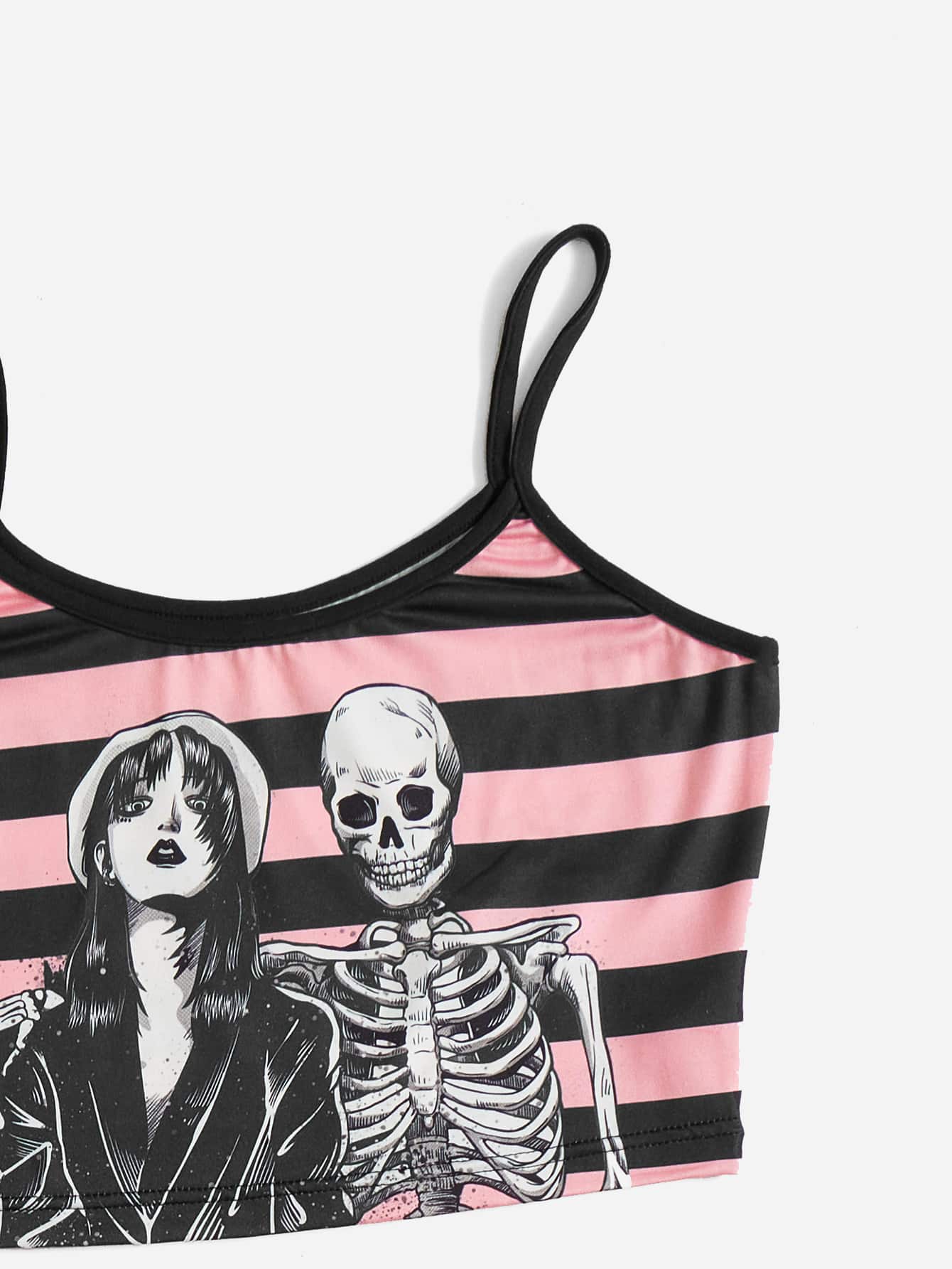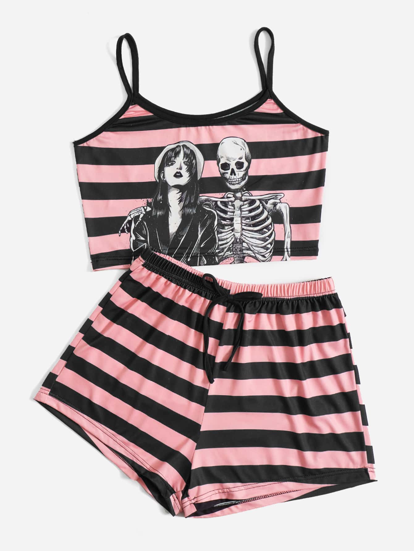 Grunge Punk Striped Skull Print Contrast Binding PJ Set
