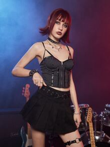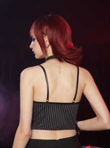 Grunge Punk Striped Zip Up Cami Top Graphic Tees Women Tops
