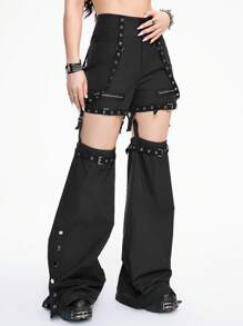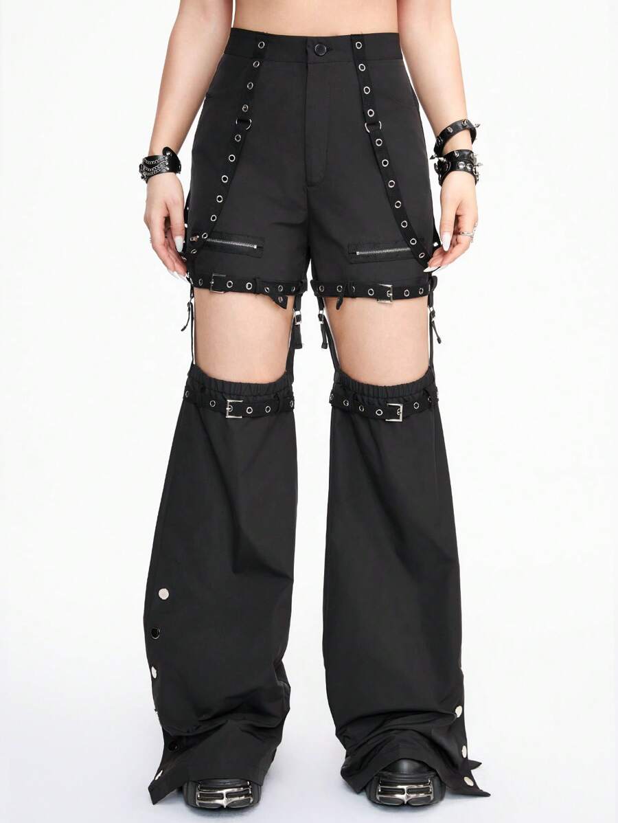 Grunge Punk Subculture Punk Gothic Street Cut-Off Design Metal Buckle Decor Women's Cargo Pants
