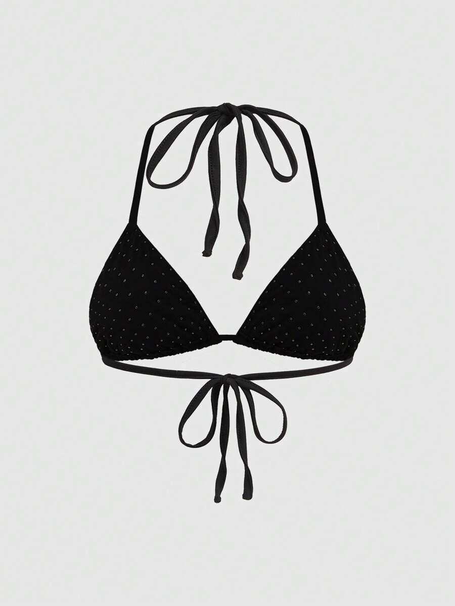 Grunge Punk Summer Outfits Plus Size Women's Punk Rock Studded Halter Backless Bikini Top Studded Bra Spikes Rhinestone Bikini Top