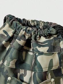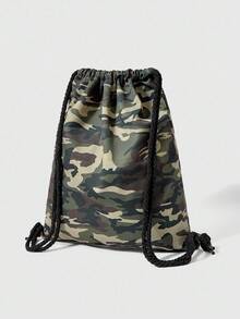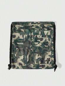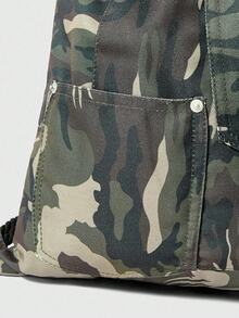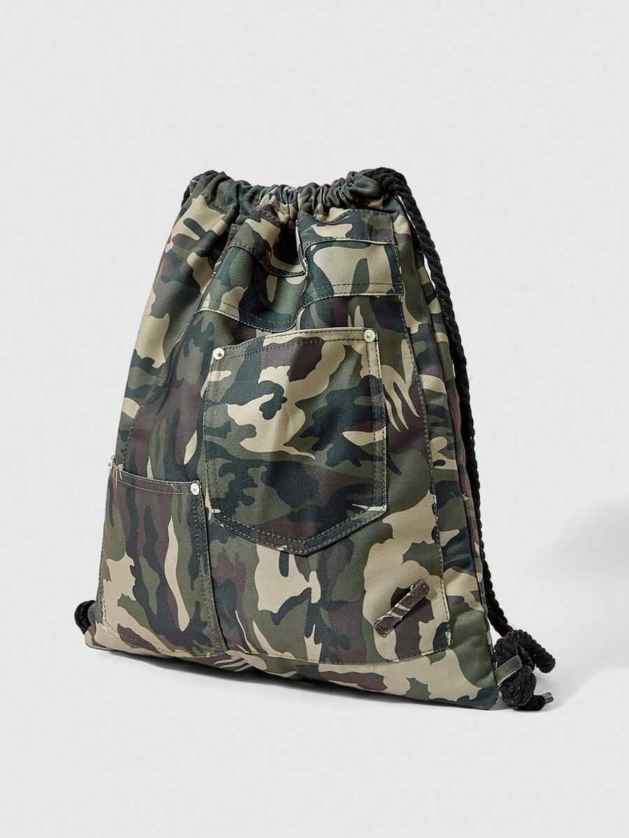 Grunge Punk Vintage Camouflage Pattern Large Capacity Multi-Pocket Drawstring Closure Backpack, Casual Versatile Unisex Suitable For Commuting, Social, Shopping
