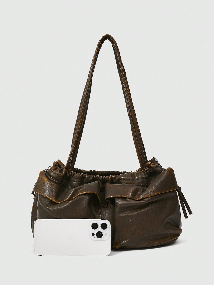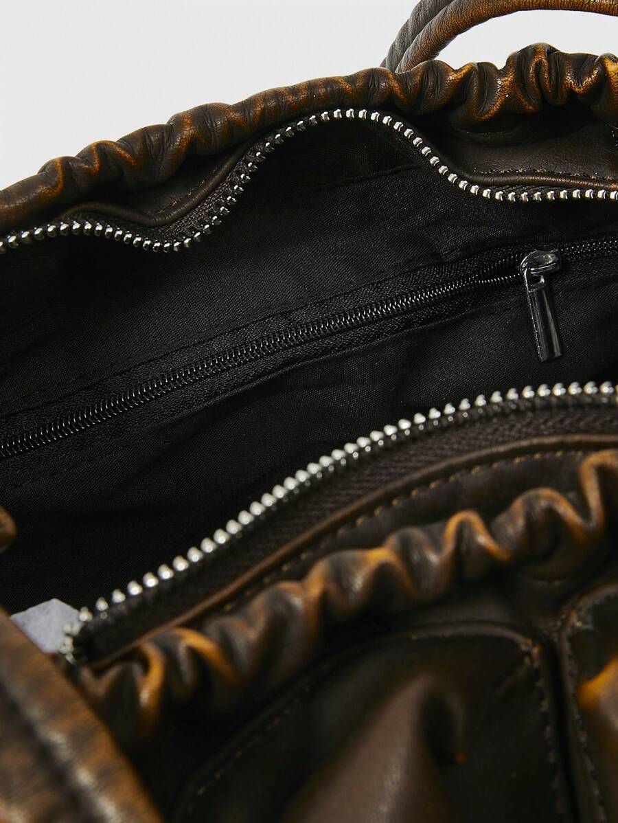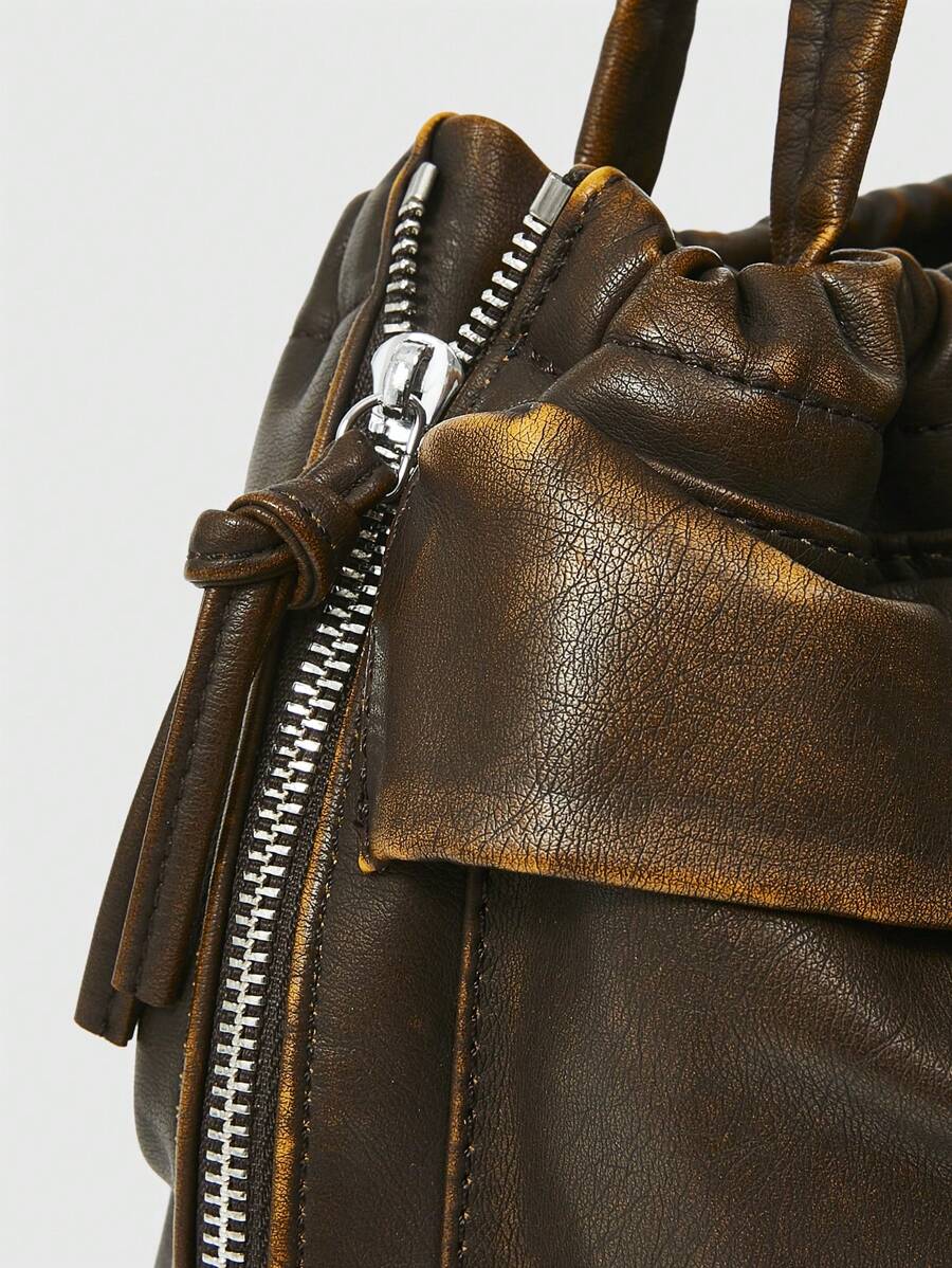 Grunge Punk Vintage Distressed Elastic-Decor Multi-Pocket Large Capacity Shoulder Bag - Ideal For Daily Commute
