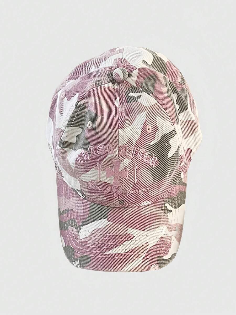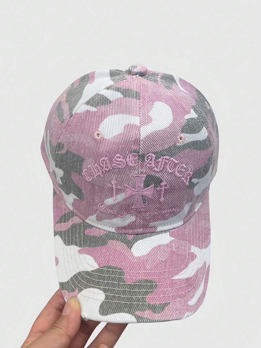 Grunge Punk Vintage Distressed Embroidered Camouflage Snapback Hat, Unisex Street Style Soft Top Baseball Cap, Versatile