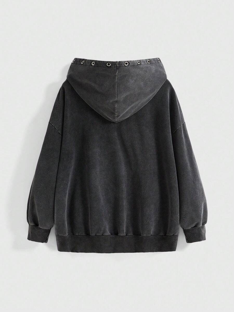 Grunge Punk Grunge-Punk Vintage Distressed Five-Pointed Star Paperclip Creative Design Plus Size Textured Hoodie Sweatshirt, Plus Size Women Casual Pullover For Daily Wear, Music Festivals, Parties