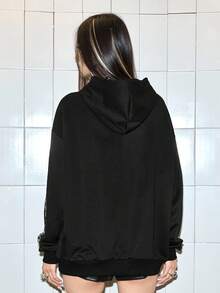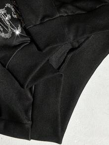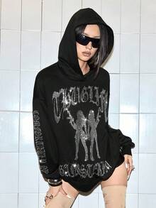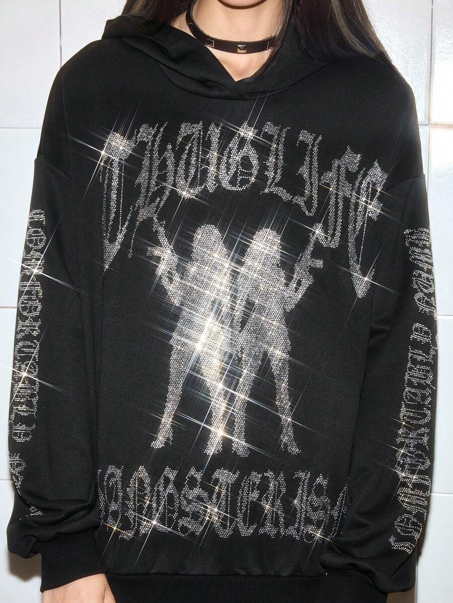 Grunge Punk Vintage Distressed Human Silhouette Rhinestone Embellished Hoodie Sweatshirt