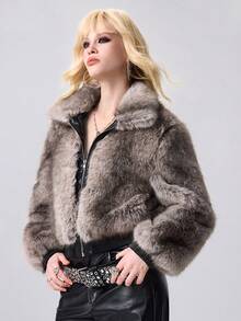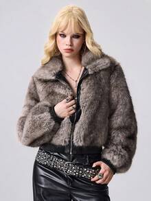 Grunge Punk Vintage Ombre Multicolor Faux Fur & PU Patchwork Open Front Women Jacket